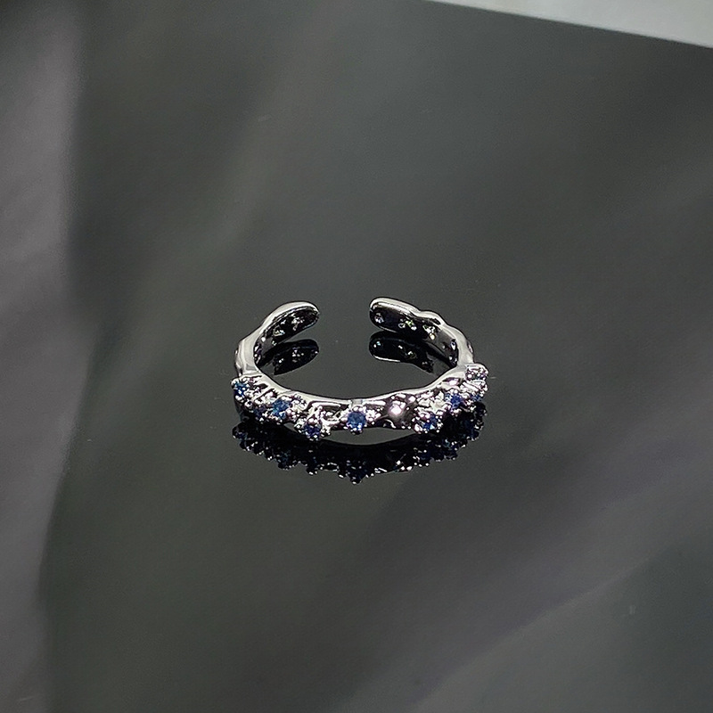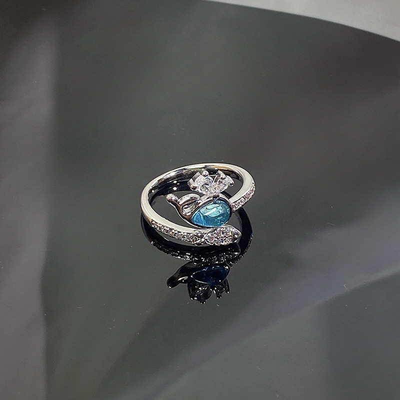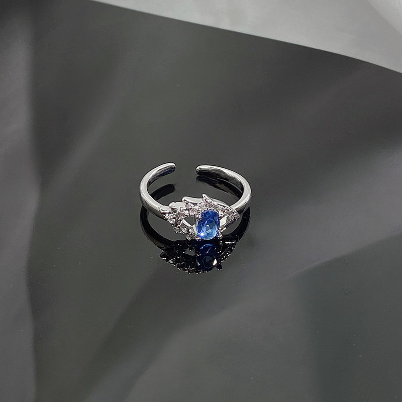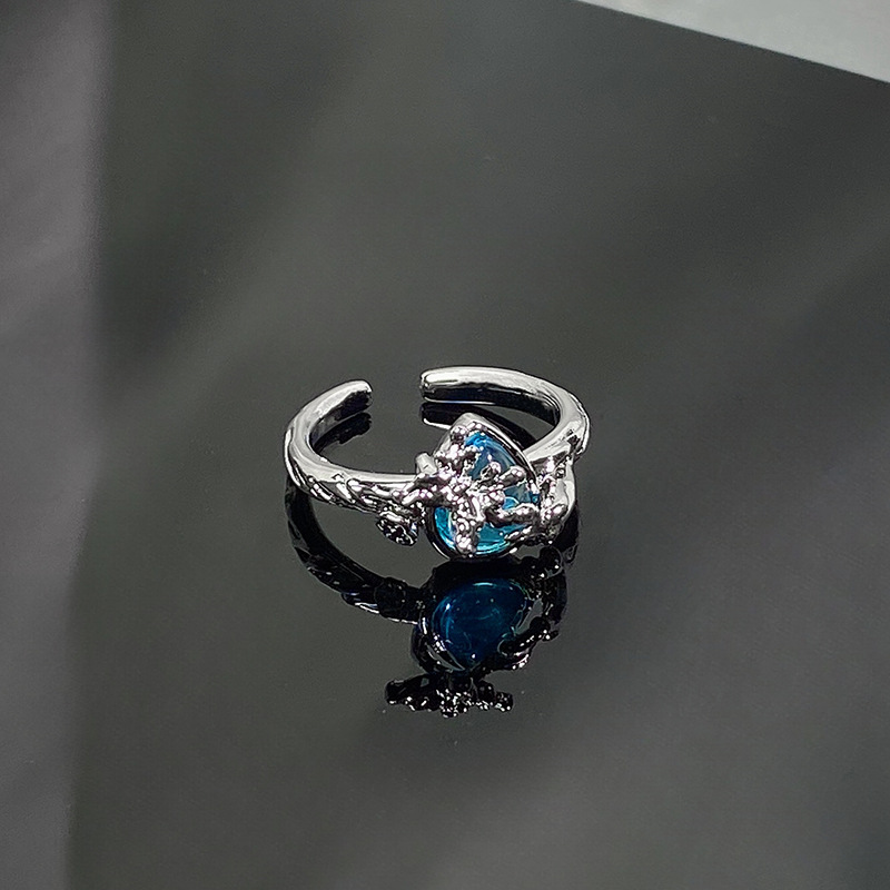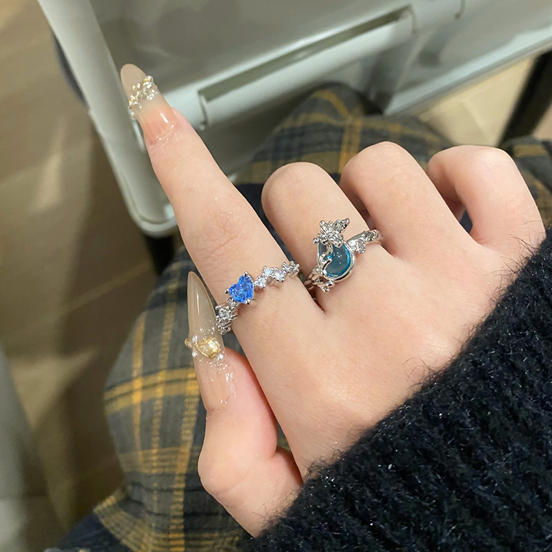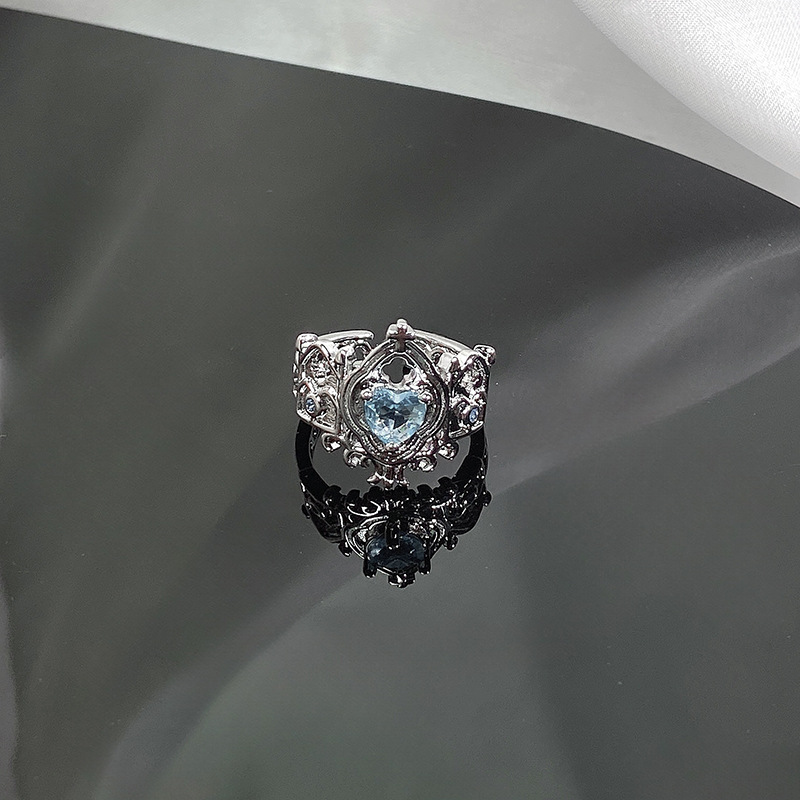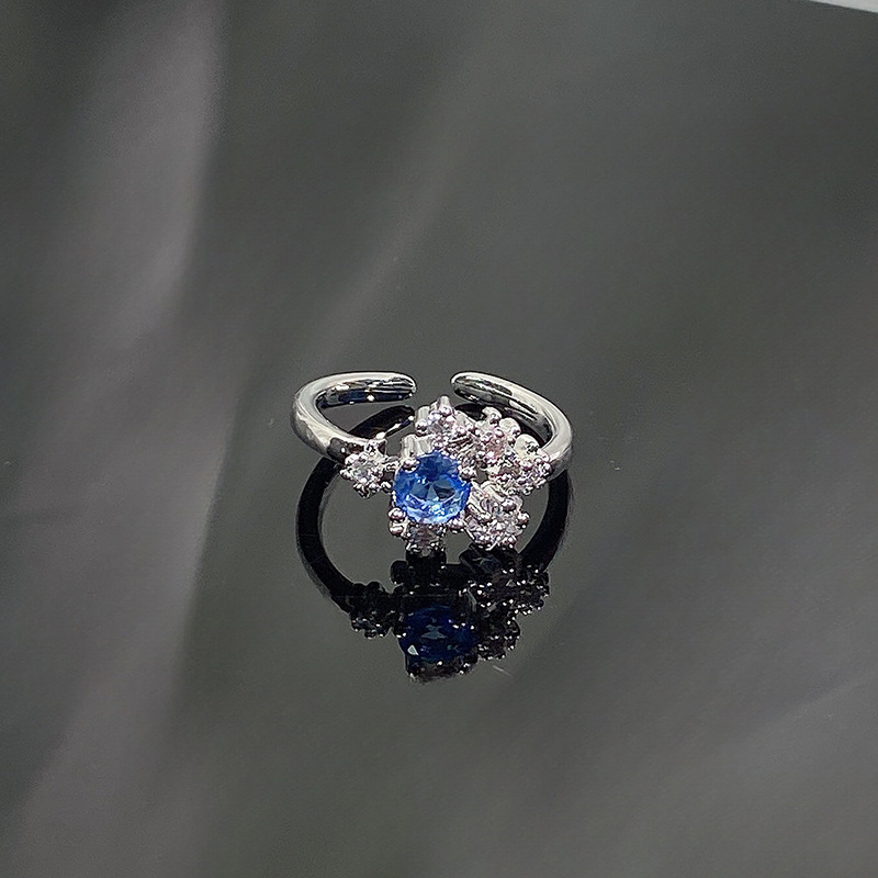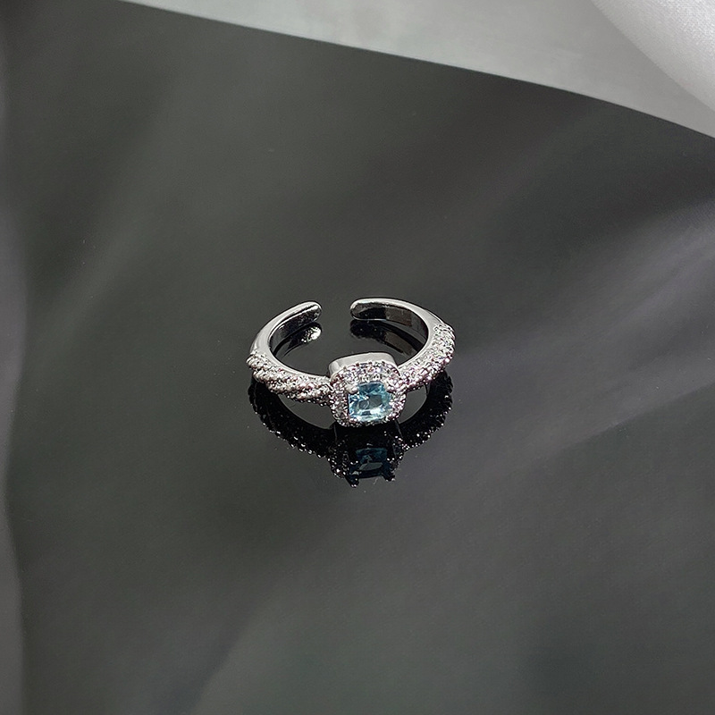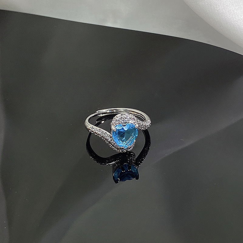 「Paraiba」Lake Blue Series Ring Feminine High-Quality Zircon Micro-Inlaid Retro Light Luxury Ring Trend