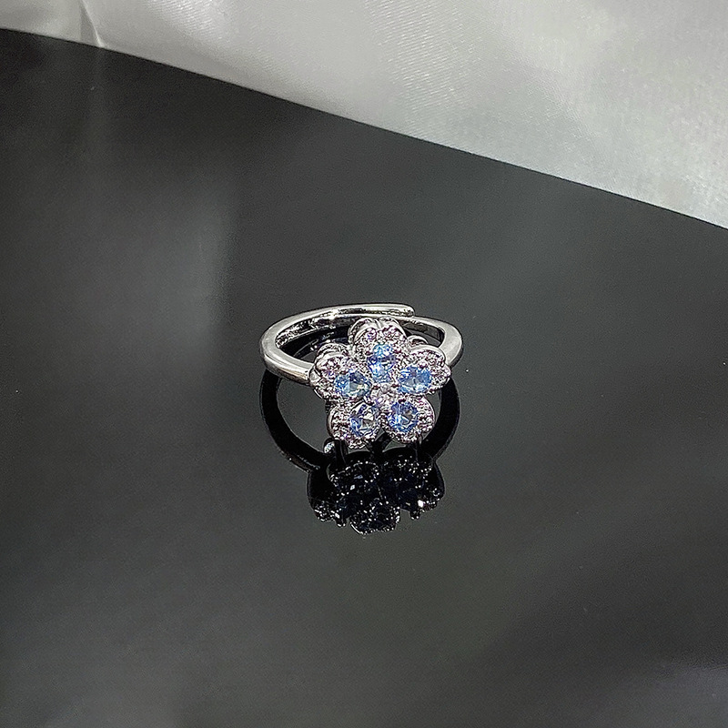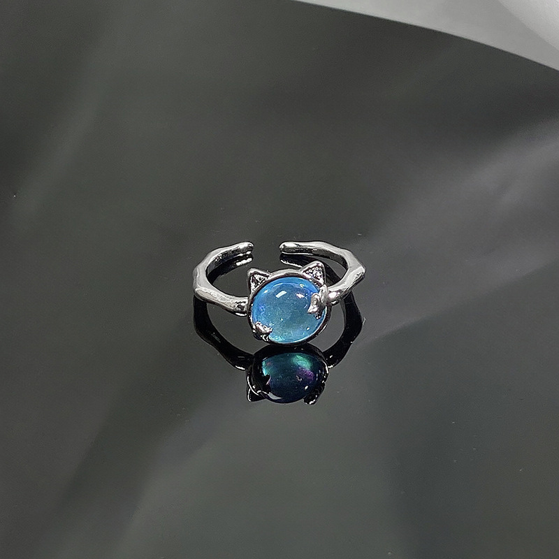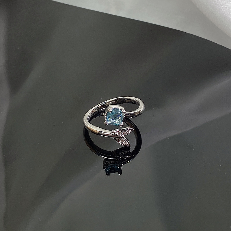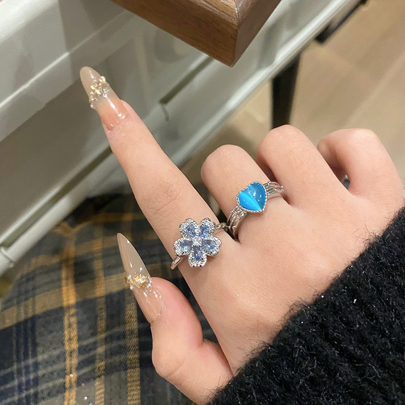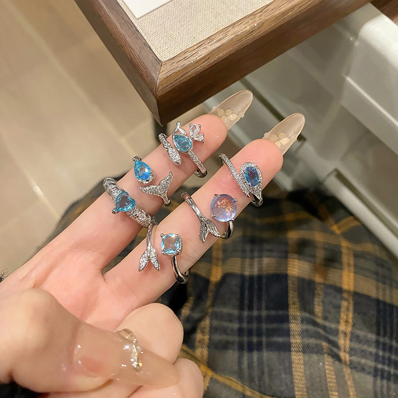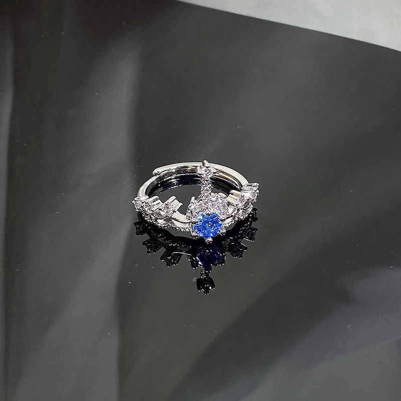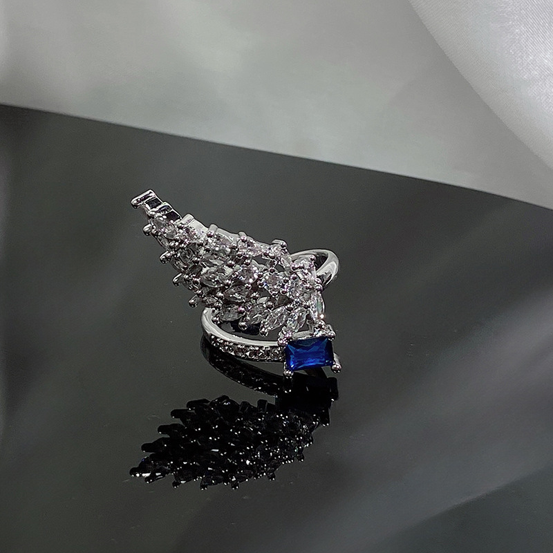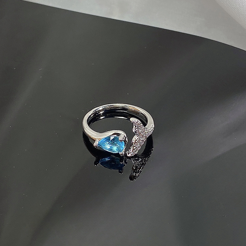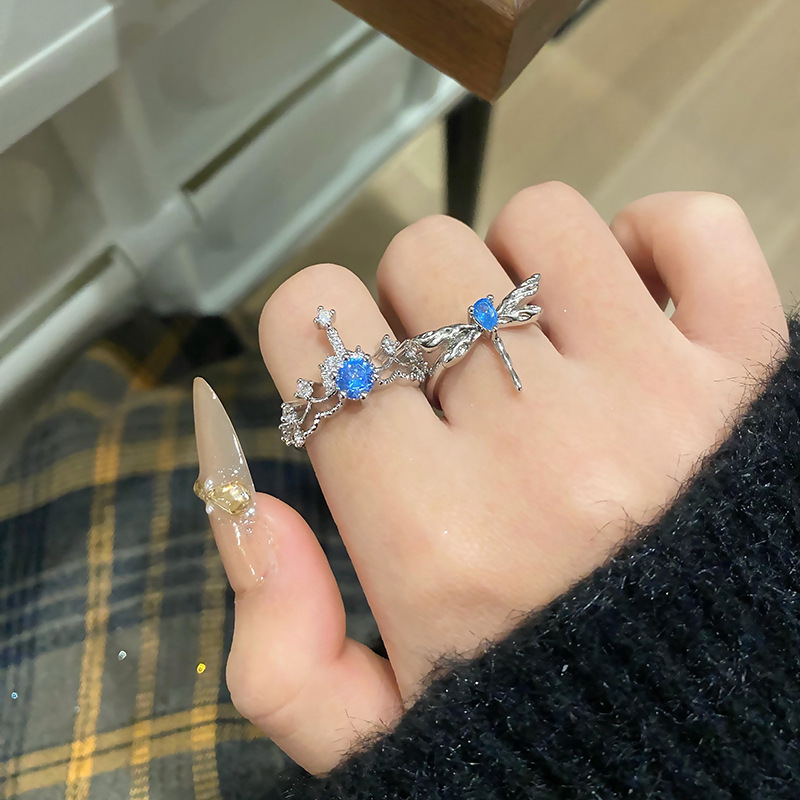 「Paraiba」Lake Blue Series Ring Feminine High-Quality Zircon Micro-Inlaid Retro Light Luxury Ring Trend