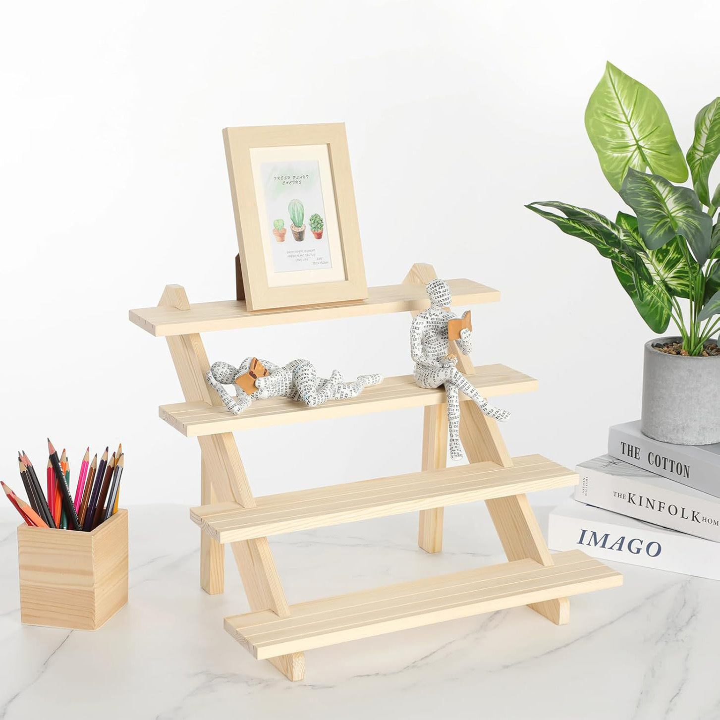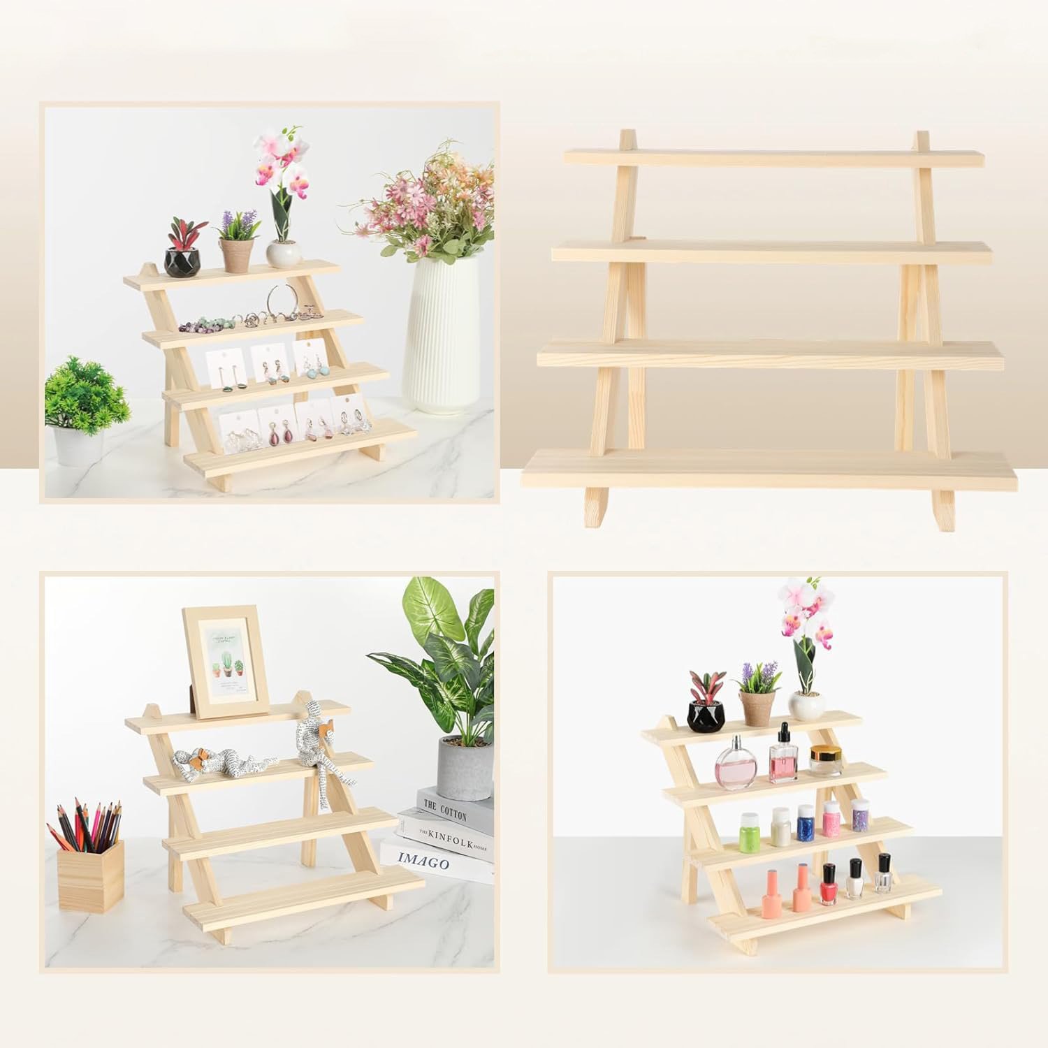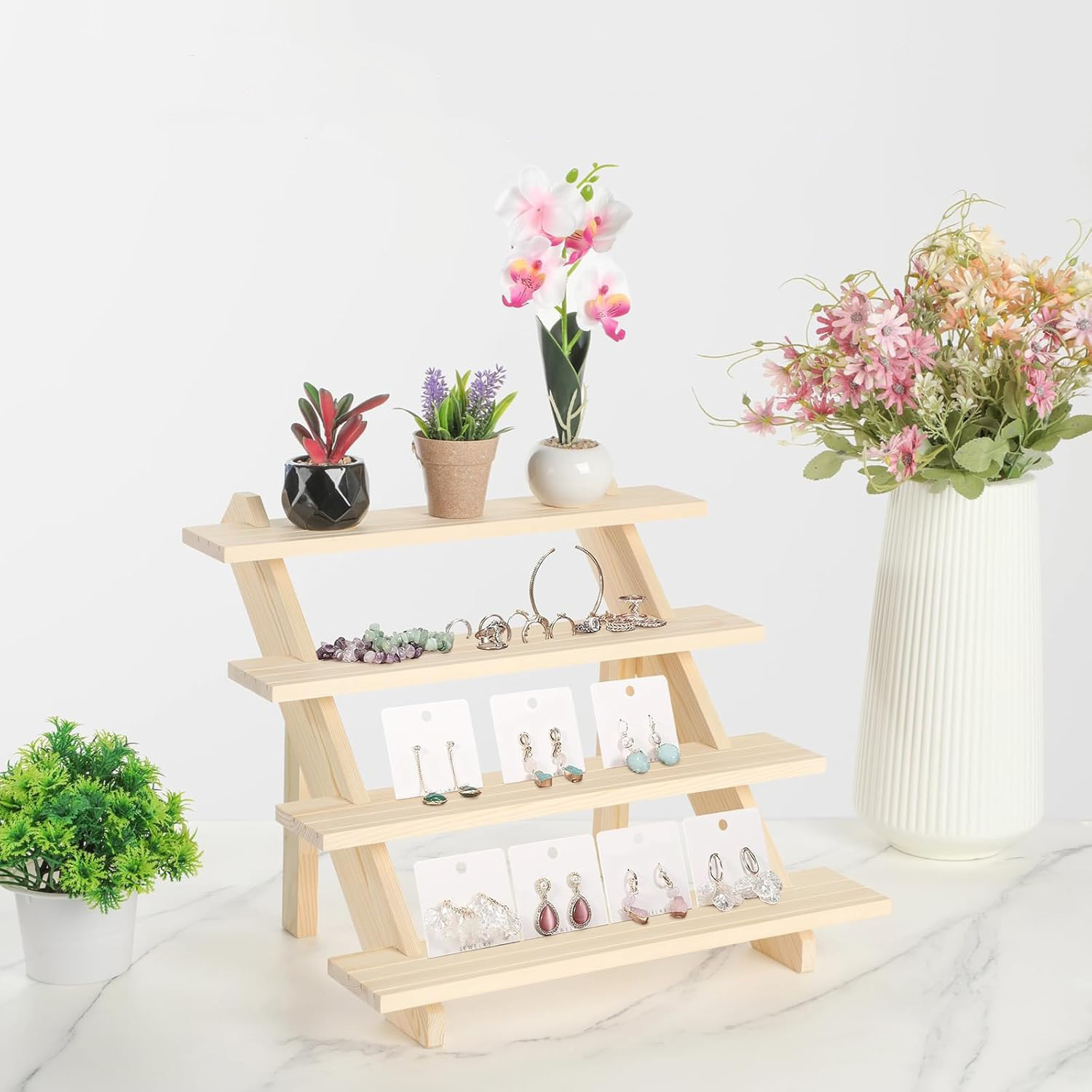 Solid Wood Ladder Display Rack Store Front Desk Cosmetics Perfume Display Rack Jewelry Ornaments Insertable Storage Rack