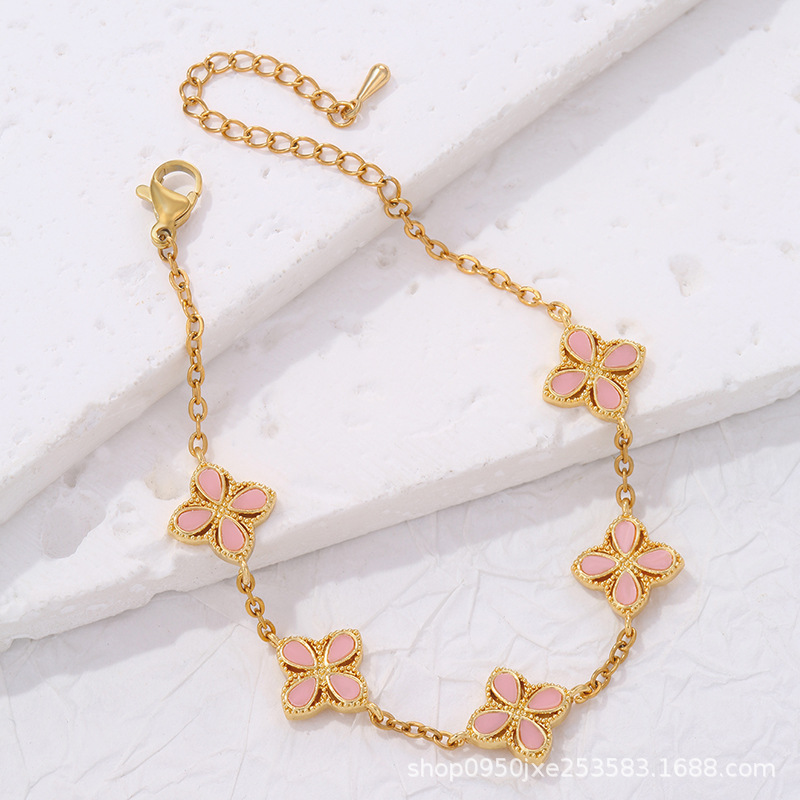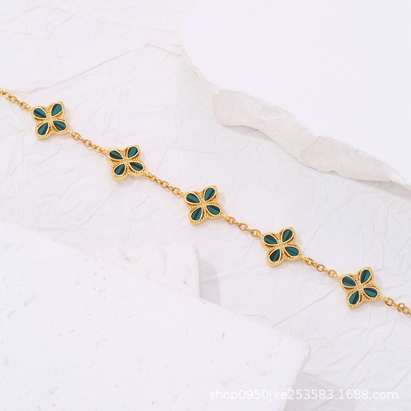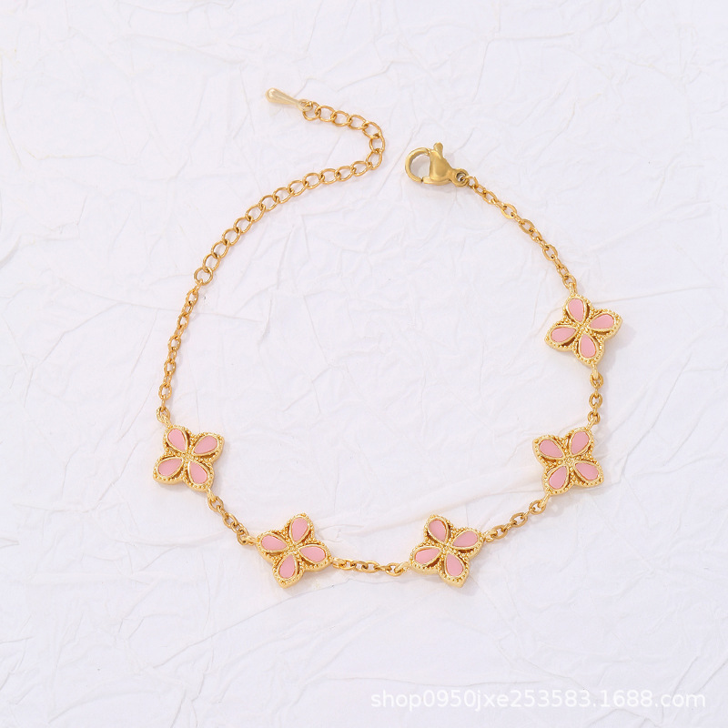 CDD Europe and the United States hot-selling single-sided fritillary simple new golden four-leaf clover titanium steel bracelet female manufacturers wholesale supply