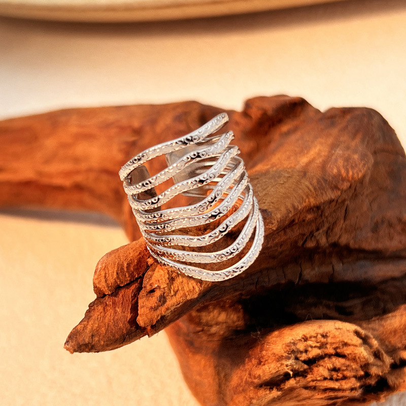 Cross-border European and American retro stainless steel ring fashion line shape irregular texture wave ring jewelry wholesale
