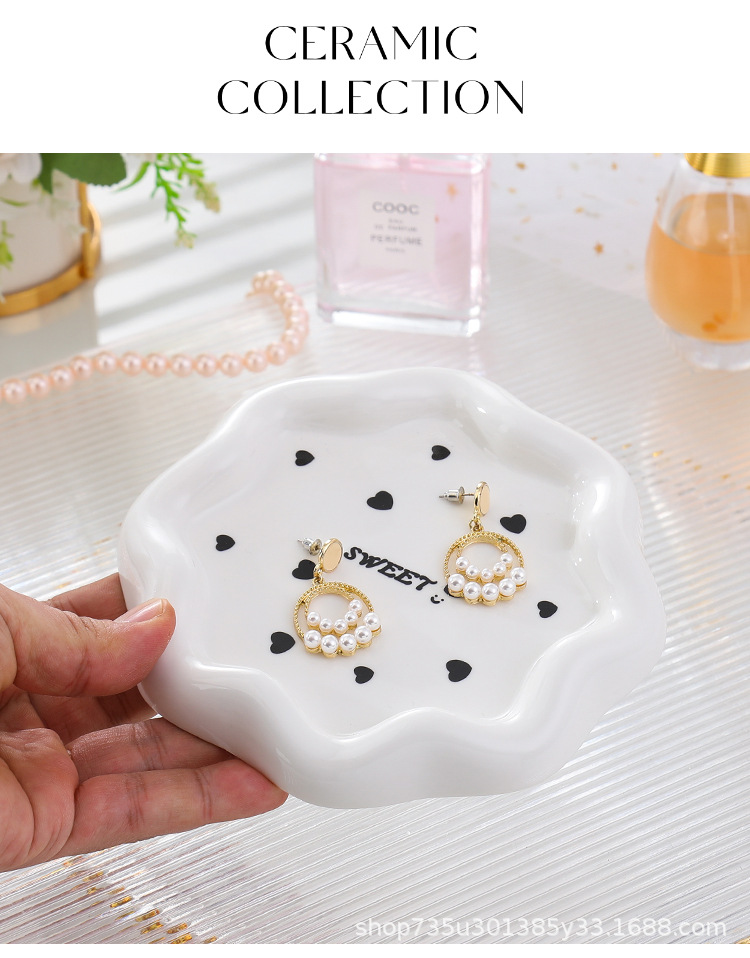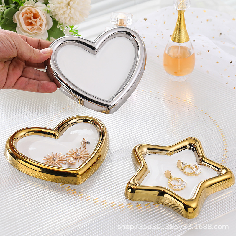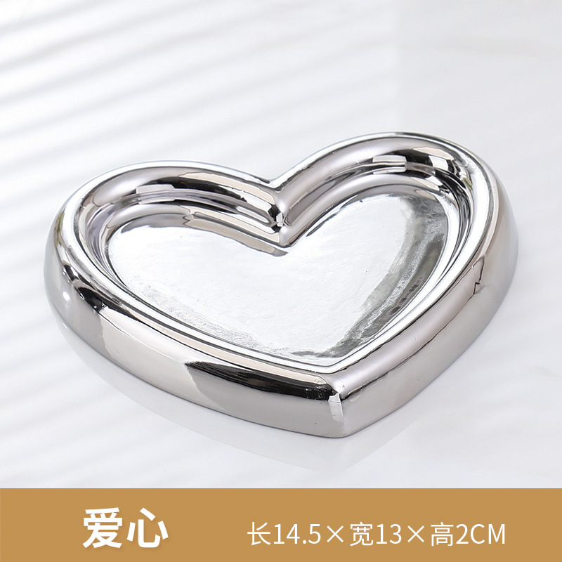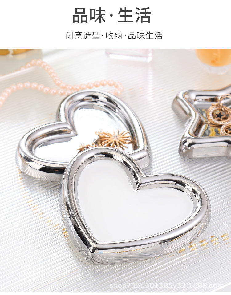 Color: Peach Heart Jewelry Plate-Outside Silver Inside White