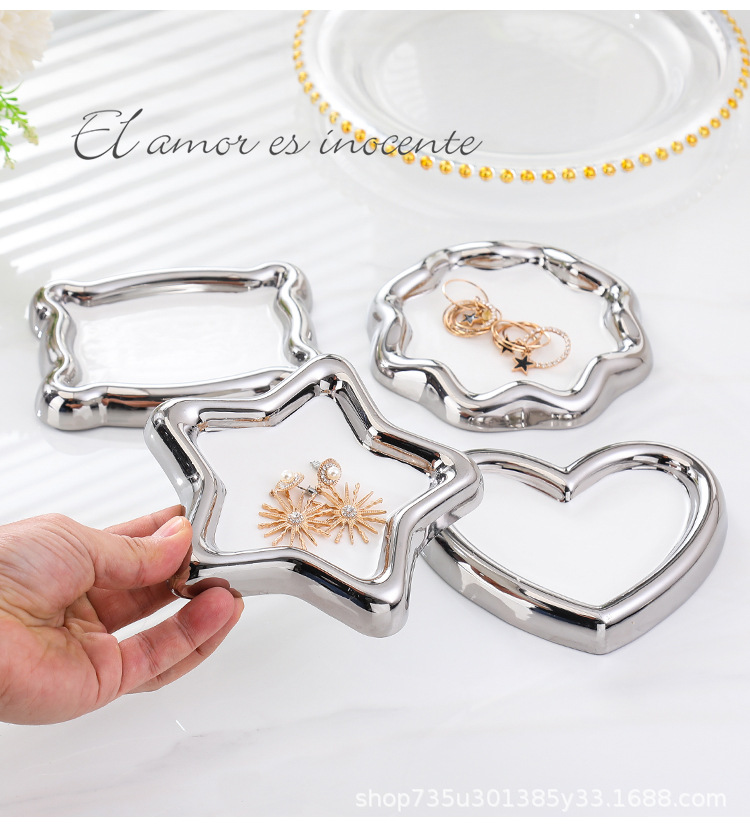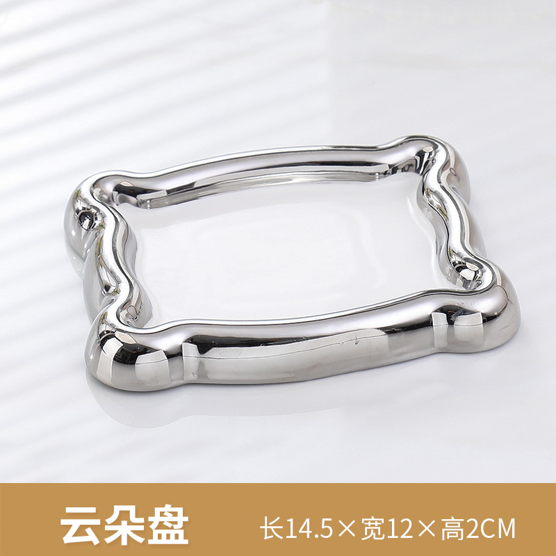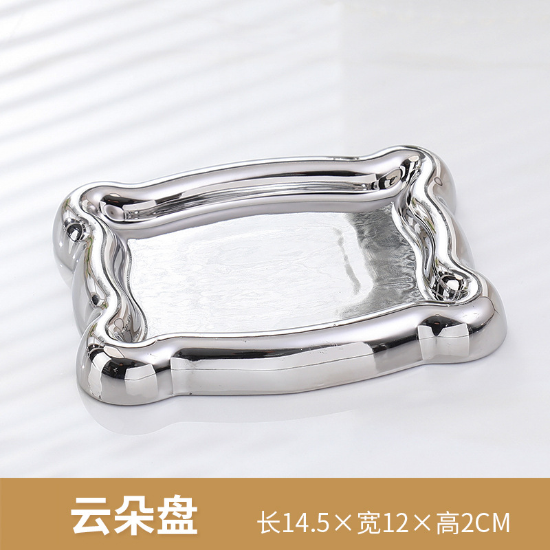 Color: Cloud Jewelry Plate-Outside Silver Inside White