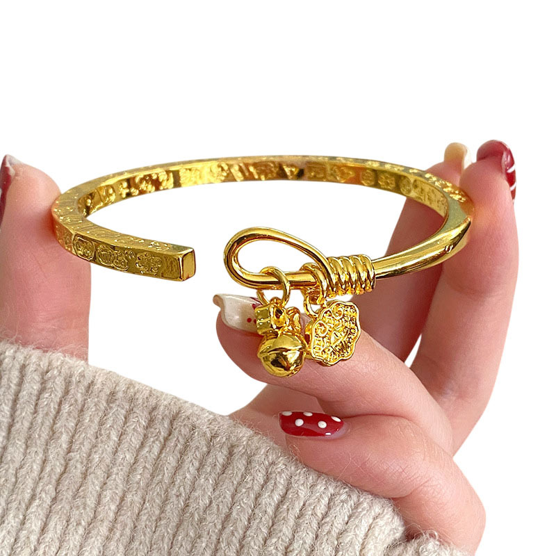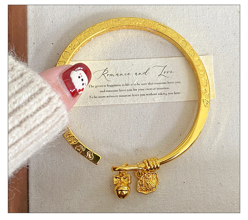 New Chinese-Style Vintage Bracelet for Women with Palace Bell Design, Silver-Plated Adjustable Open Bracelet with Geometric Elements, Wholesale
