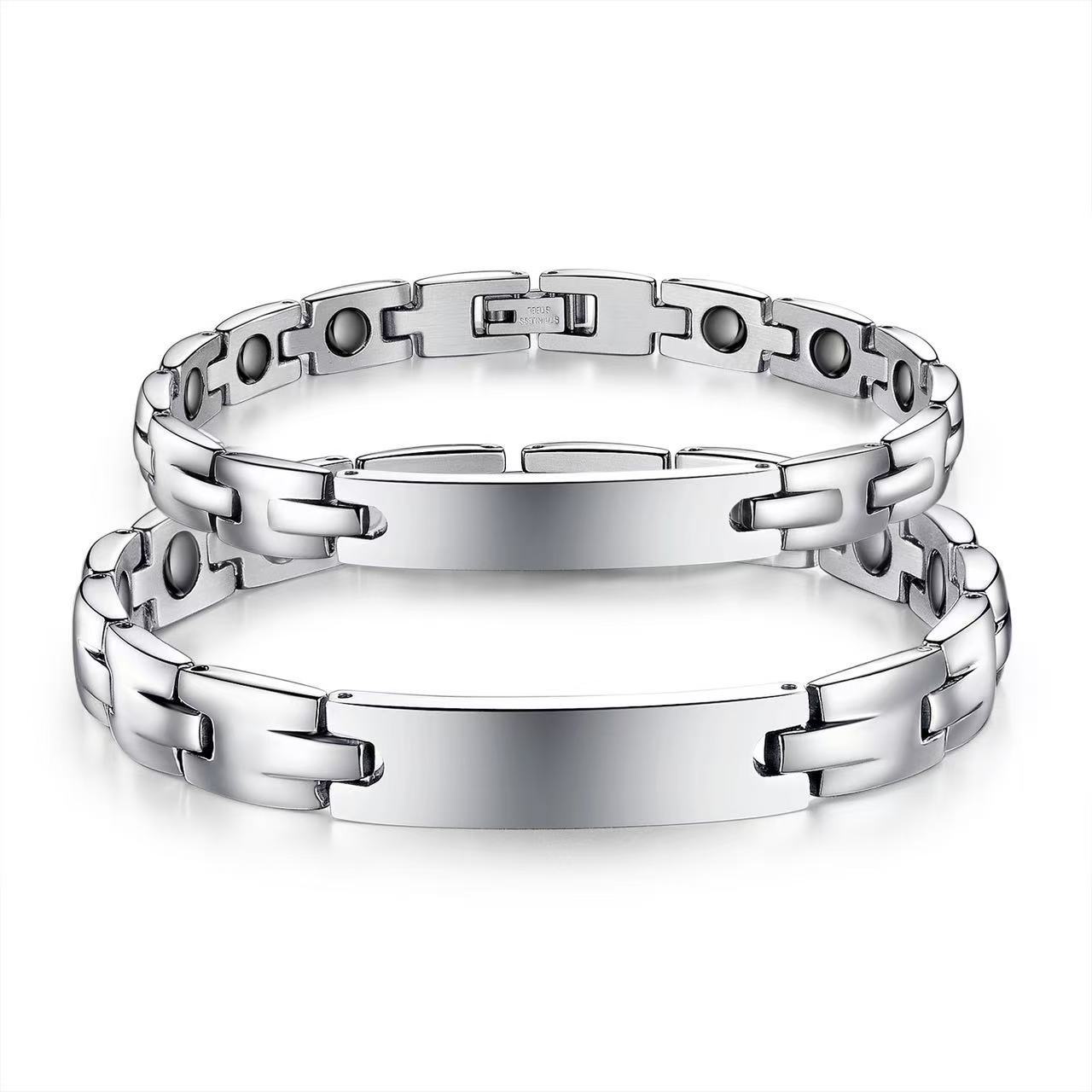 Japanese and Korean Jewelry Fashion Simple Couple Jewelry Niche Design Sense Engraving Titanium Steel Bracelet for Men and Women Cross-border Supply