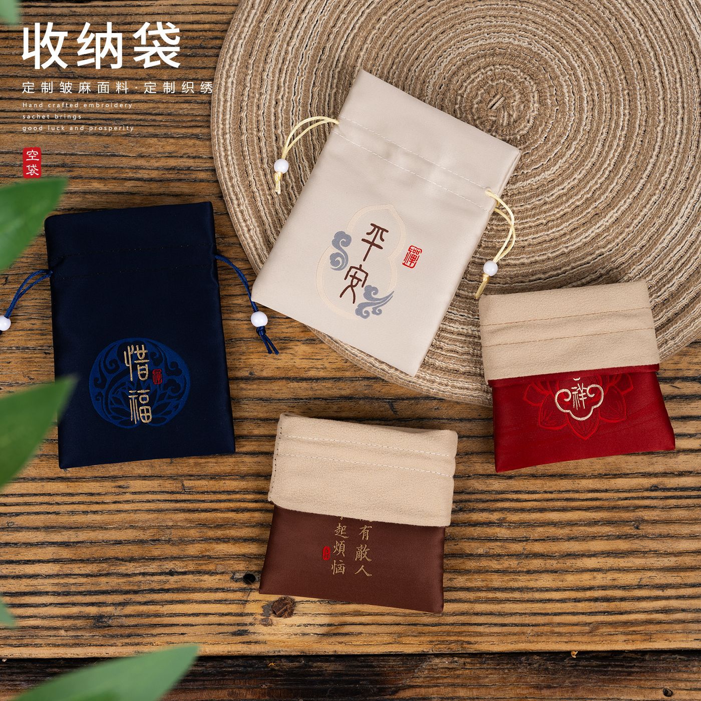 Double-layer beads bag girdle storage bag brocade bag Chinese style jewelry bag cultural play bag carry-on sachet sachet empty bag