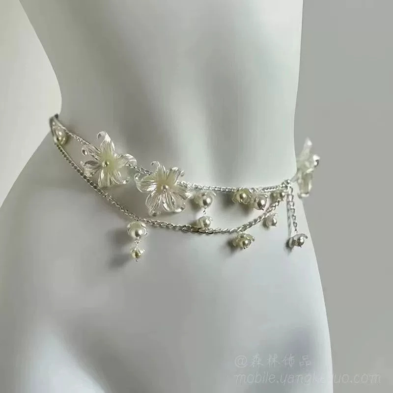 Color: Multi-layered flower tassel waist chain
