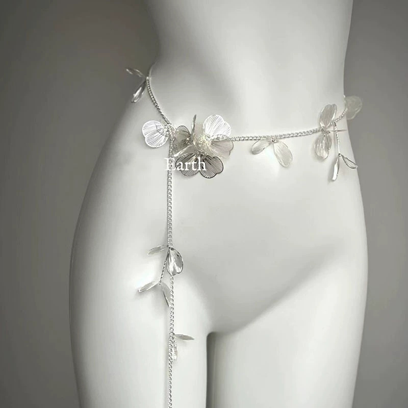 Color: Silver flower necklace---waist chain