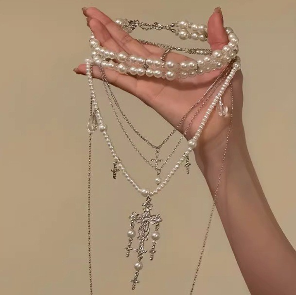 Color: Multi-layered cross necklace