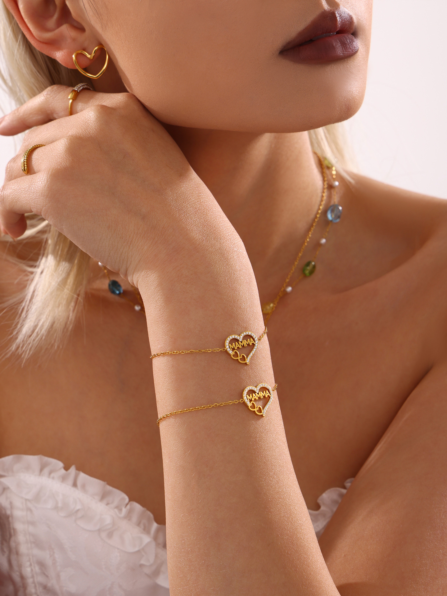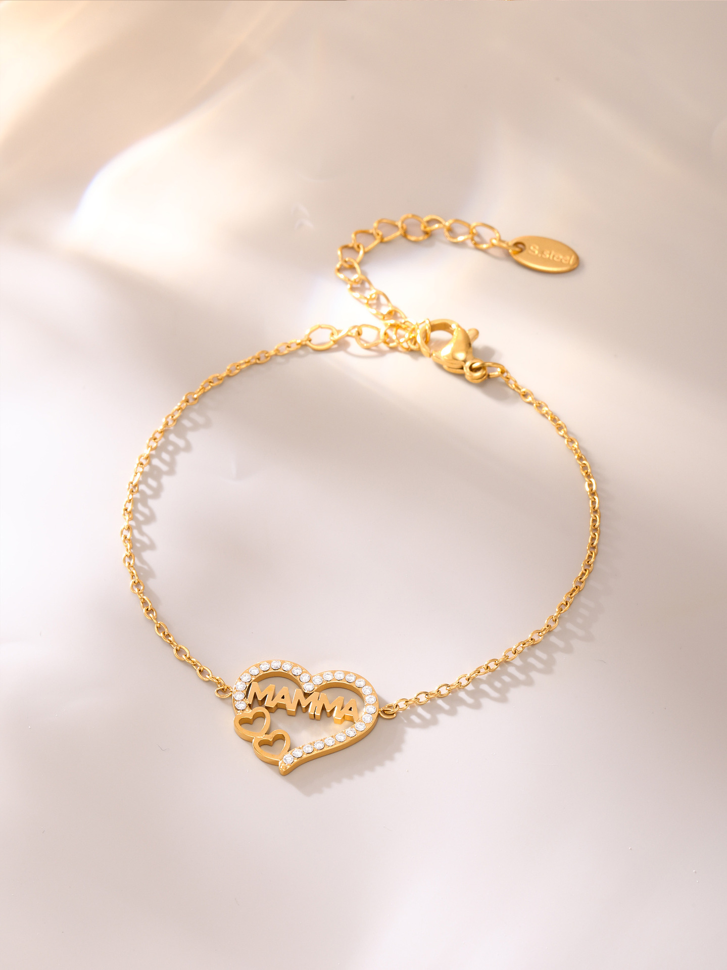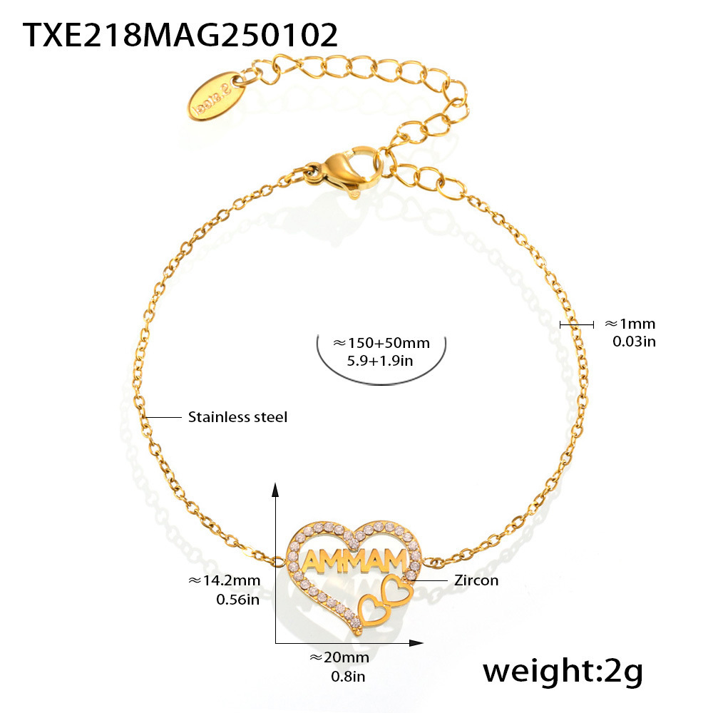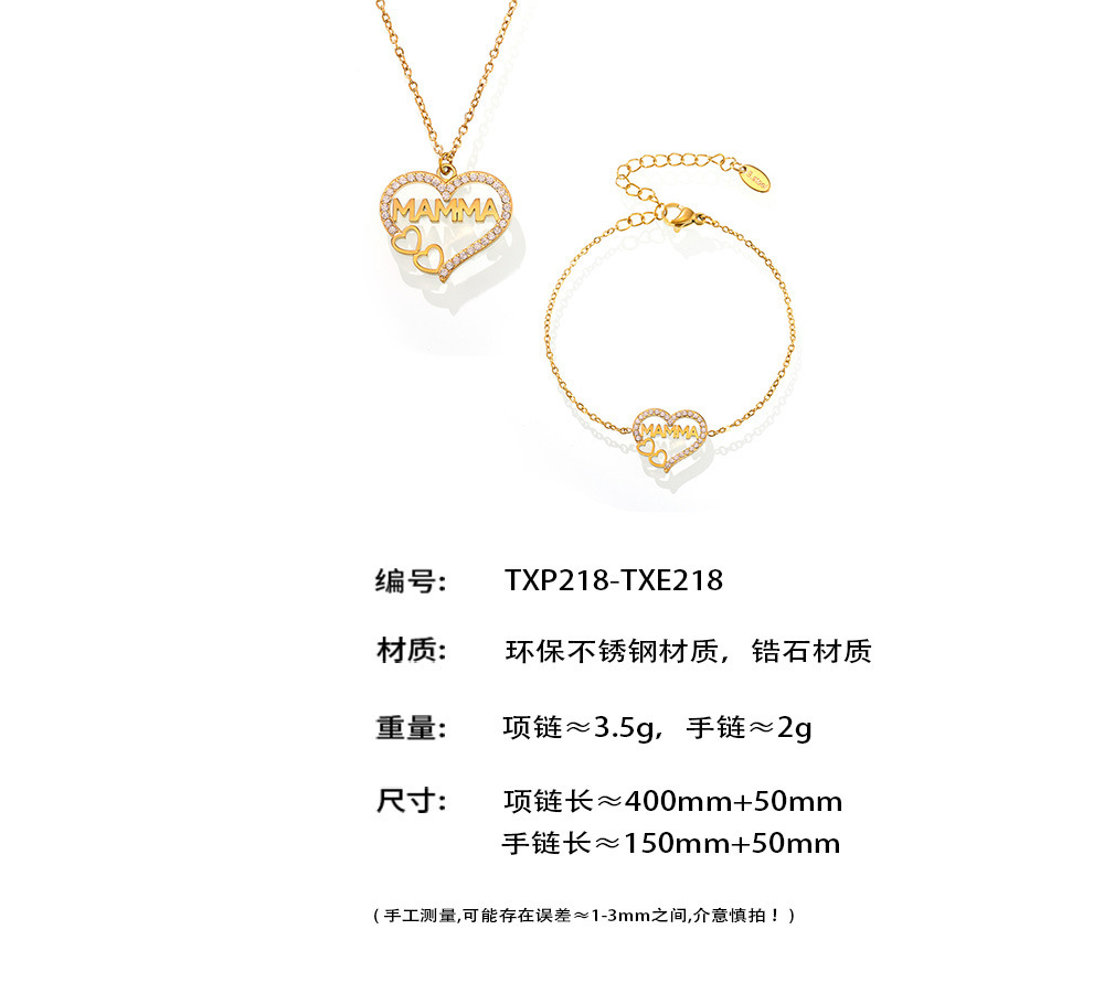 Sugar European and American Mama Love Zircon Letter Clavicle Necklace Bracelet Titanium Steel PVD Electroplated 18K True Gold suit
