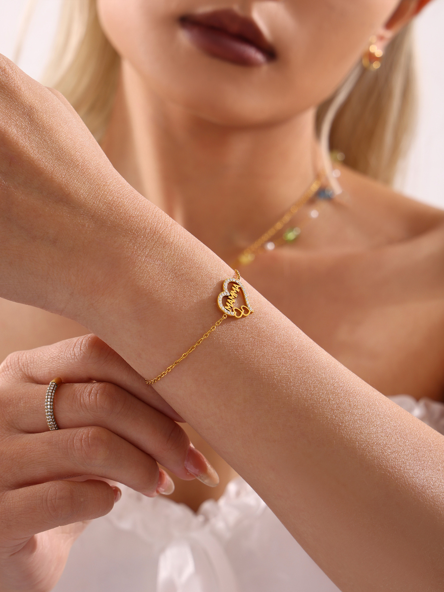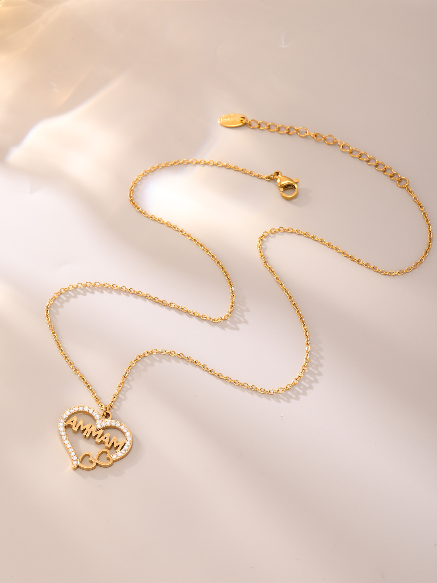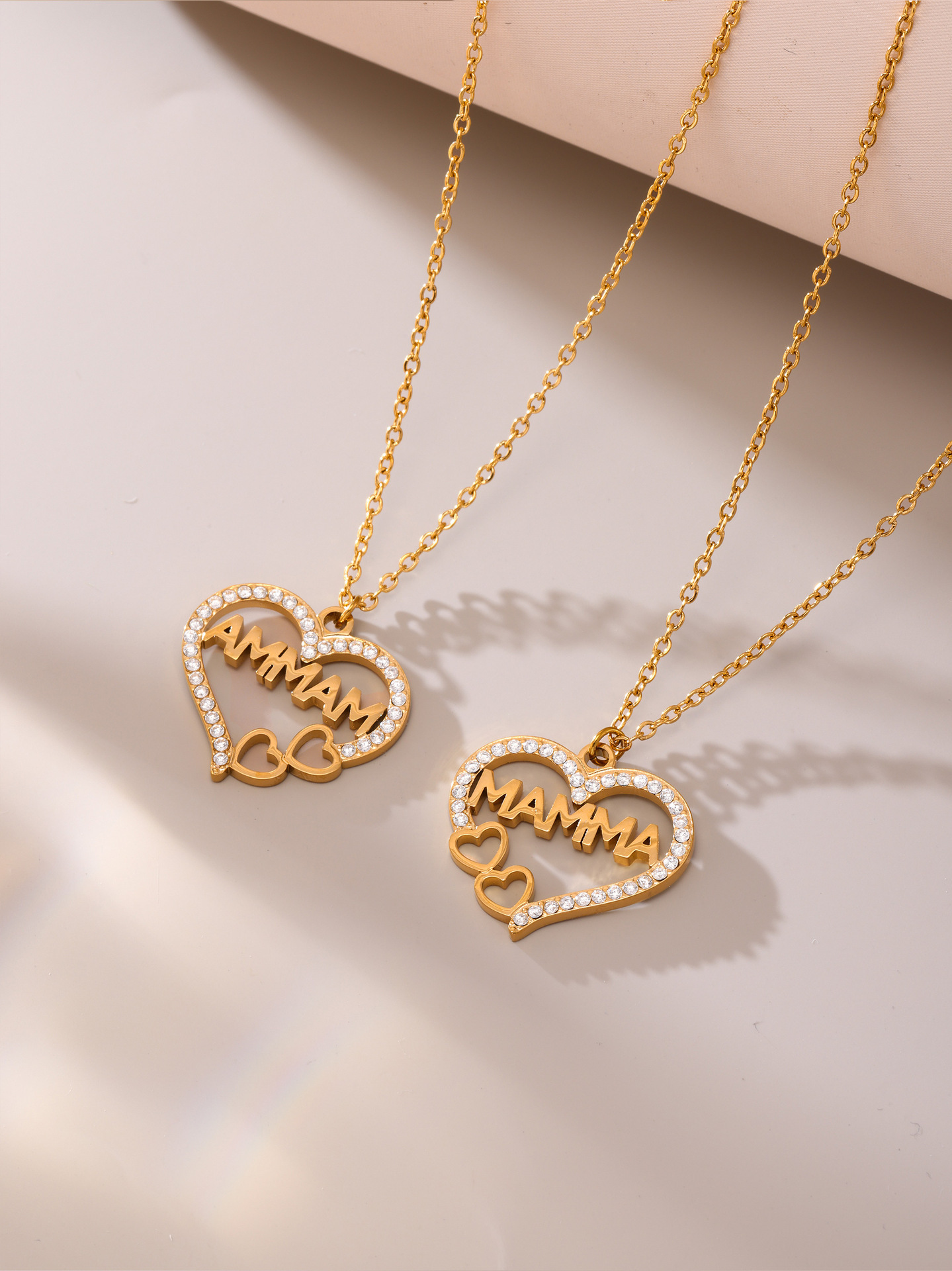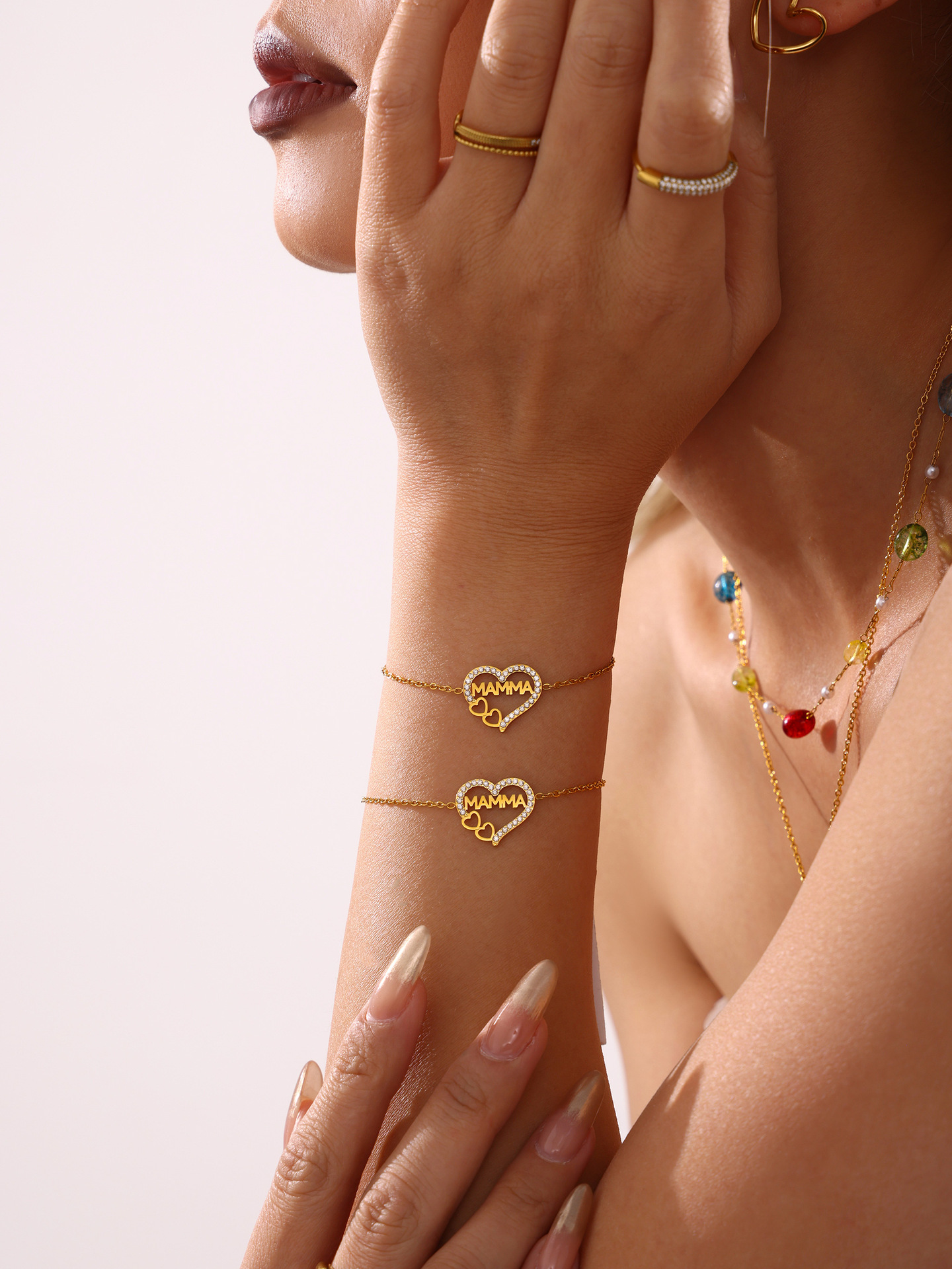 Sugar European and American Mama Love Zircon Letter Clavicle Necklace Bracelet Titanium Steel PVD Electroplated 18K True Gold suit