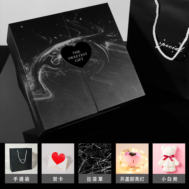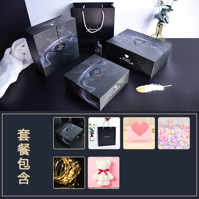 Specification model: Gift box [with gift bag + greeting card + meteor + light string]; 21*21*8cm can hold facial mask/mug/mobile phone