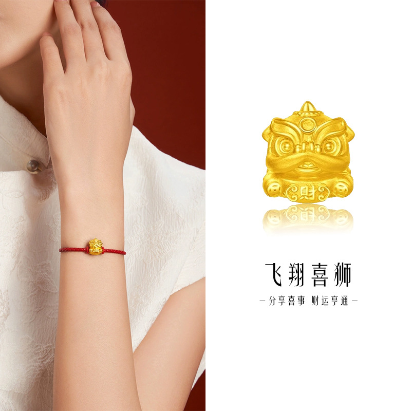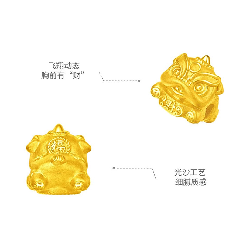 Sand gold culture blessing dance lion transfer beads imitation gold necklace pendant wealth lion bracelet diy accessories
