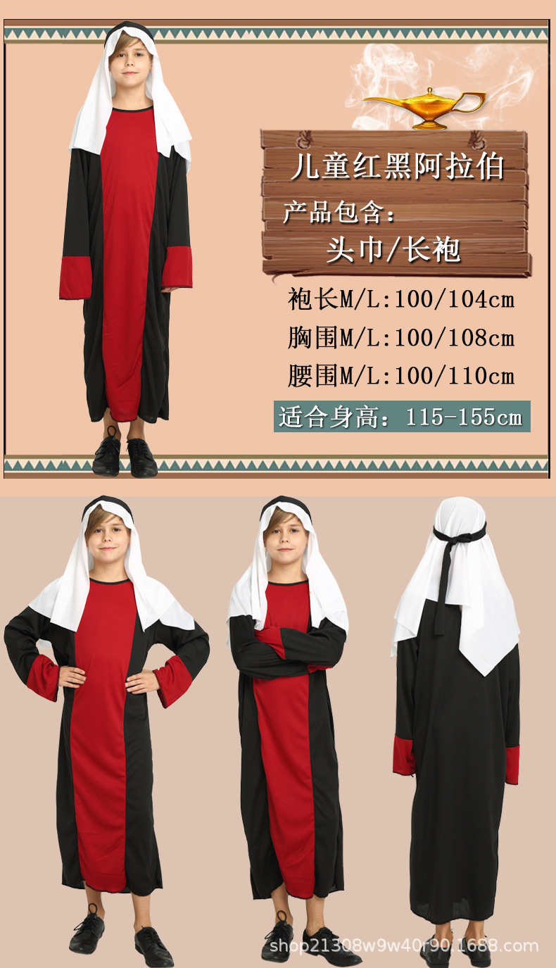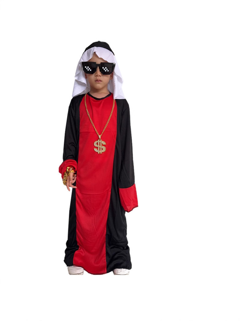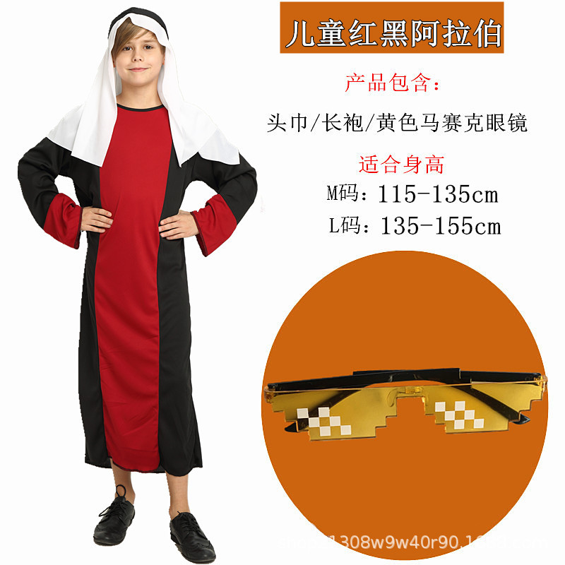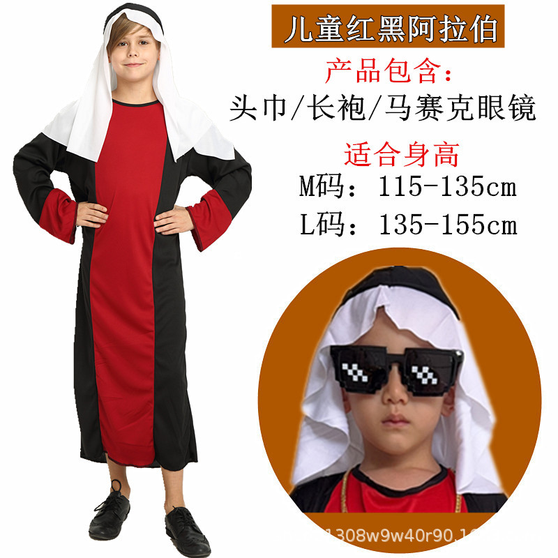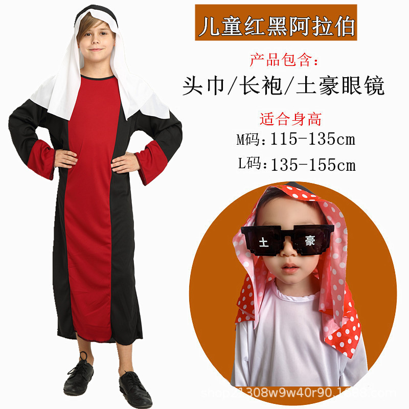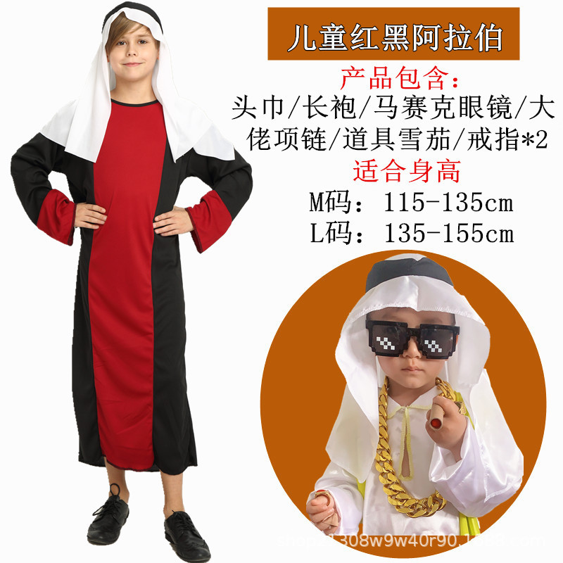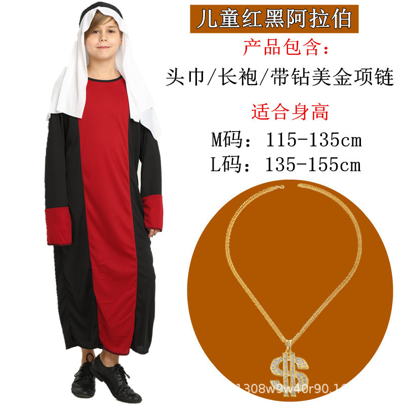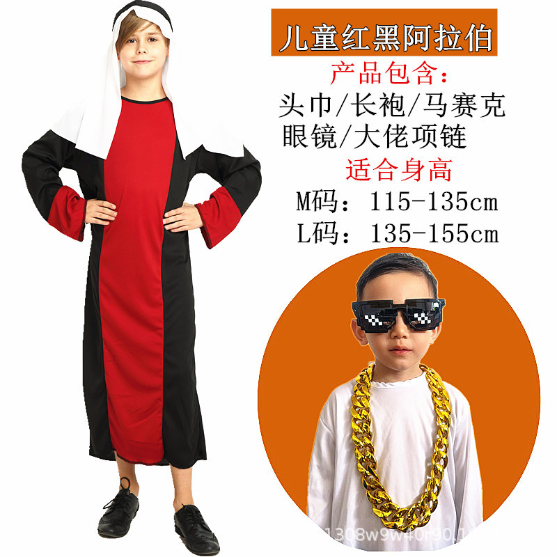 Color: Children's red and black arabic complete set (send beard)