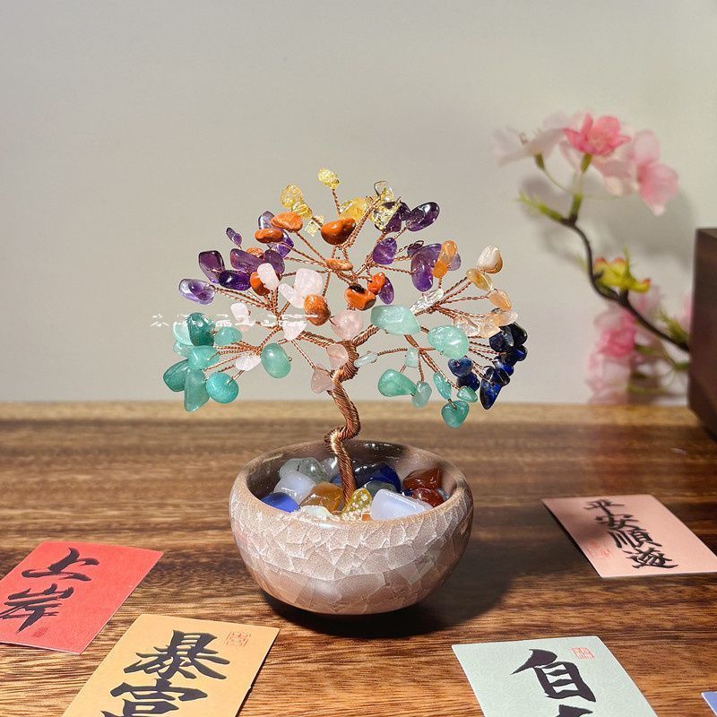 Natural Crystal Gravel Wealth Tree Diamond Bowl Alloy Coin Life Tree Home Desktop Decoration Crystal Tree Ornaments
