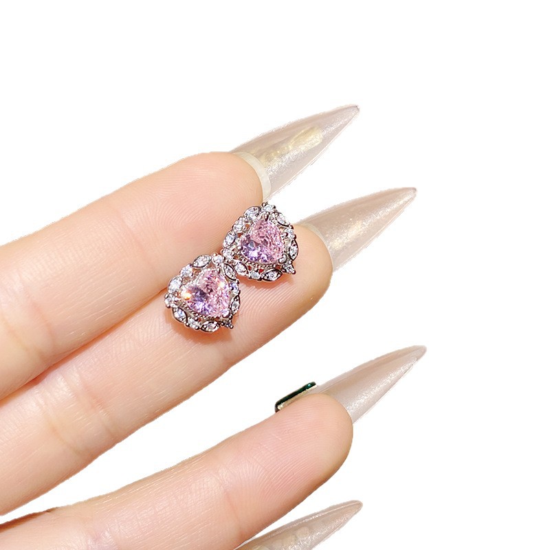Camellia Laurel Heart Inlaid Powder Diamond Ring Women's Light Luxury Niche Design Love Earrings Necklace Three-piece Set