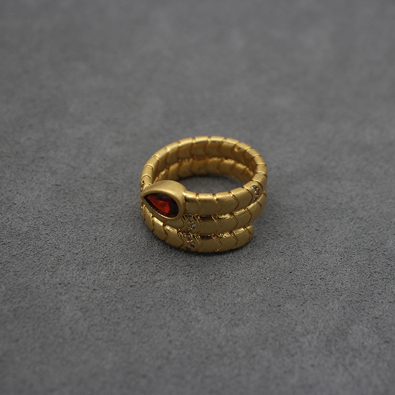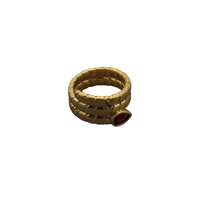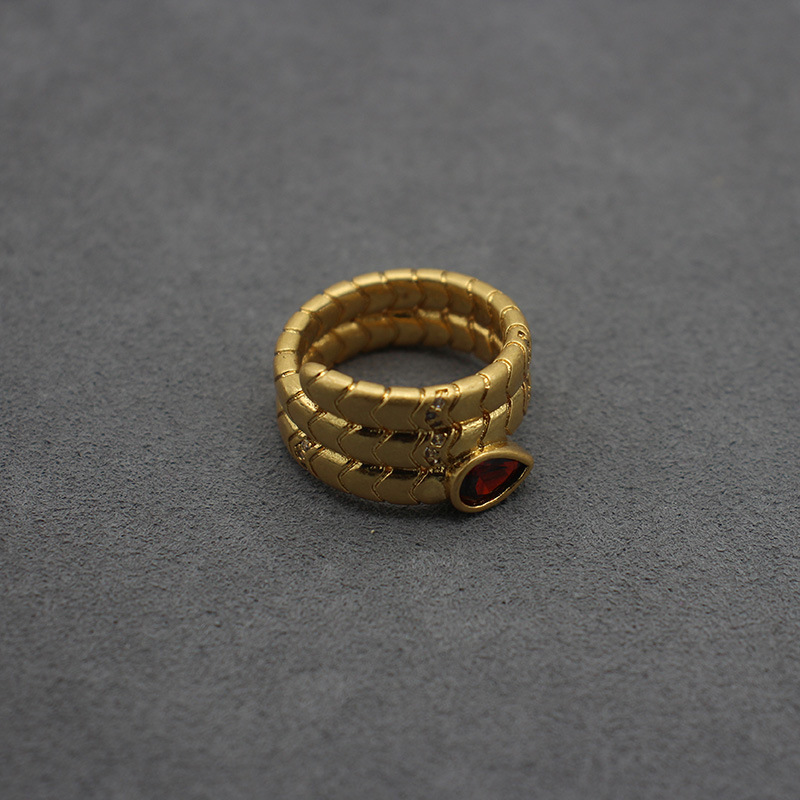 Medieval Pictures Customized Snake Ring Water Drop Zircon Ring Brass Real Gold Plated High-End Small Single Custom Factory