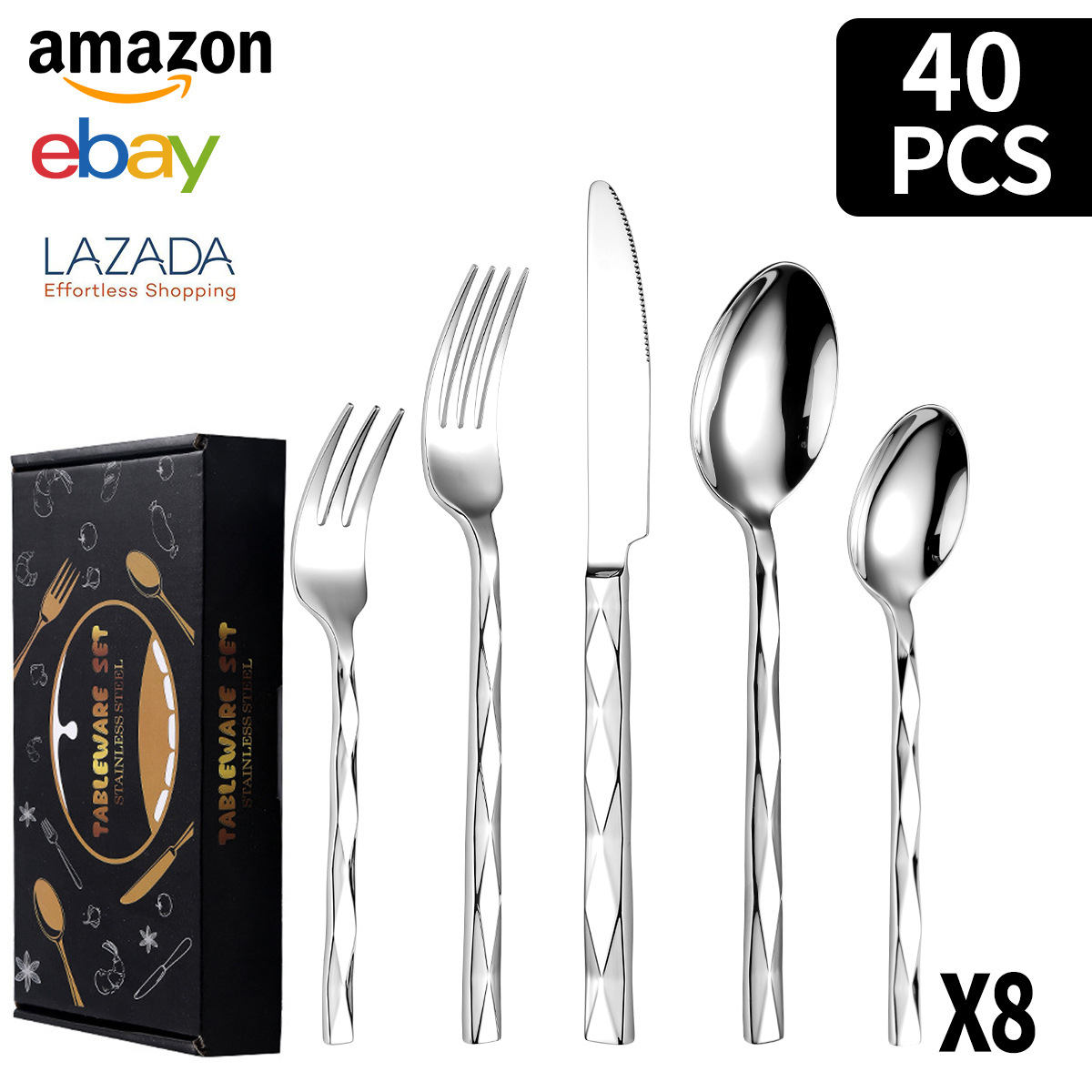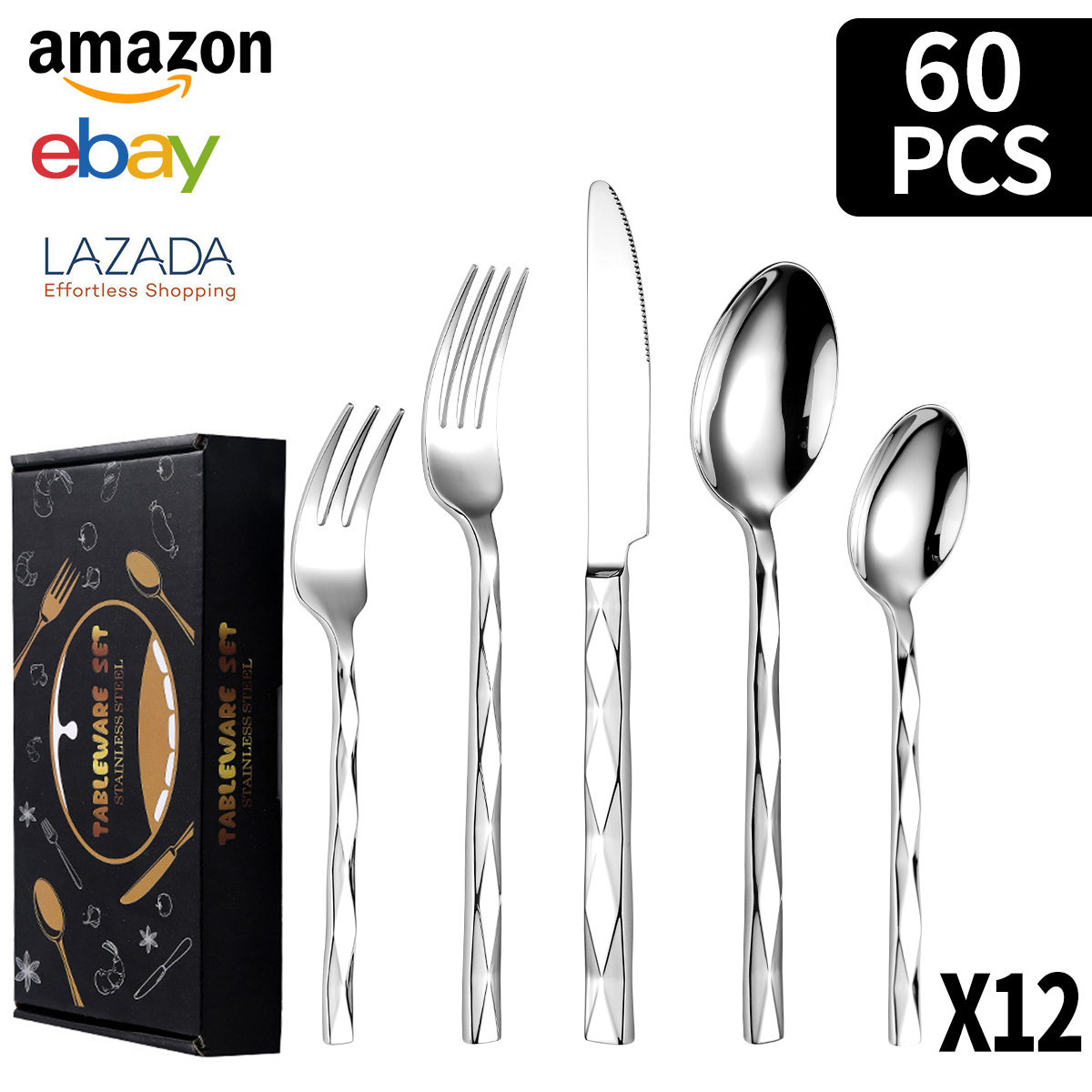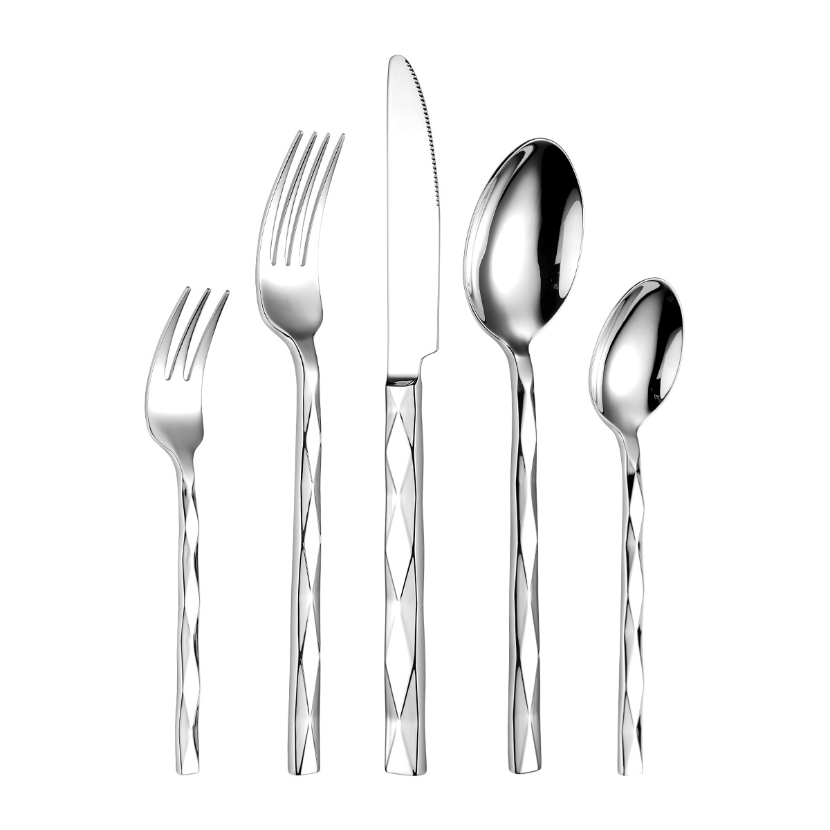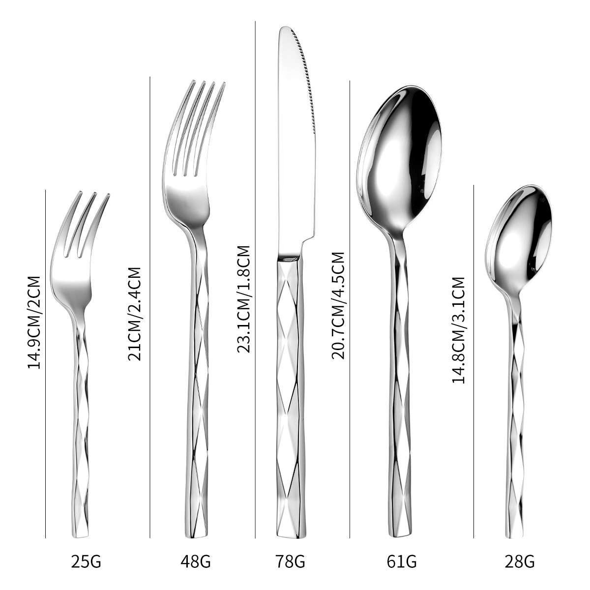 Cross-Border Prismatic 20/30/40/60 Piece Set Diamond Stereo Accessible Luxury Stainless Steel Tableware Steak Knife, Fork and Spoon