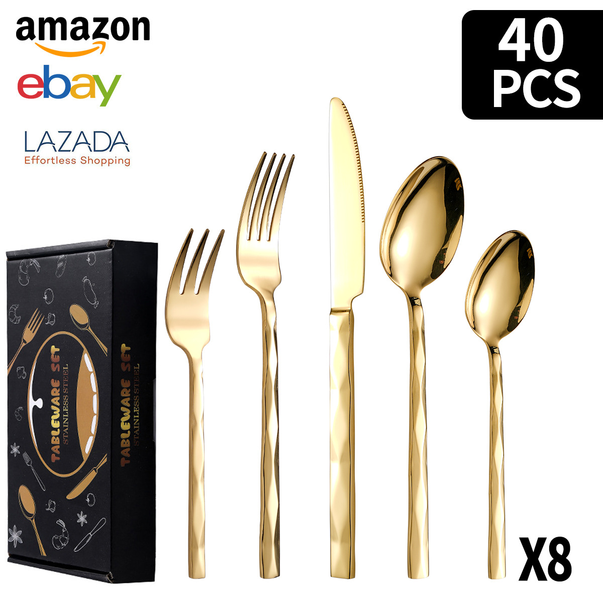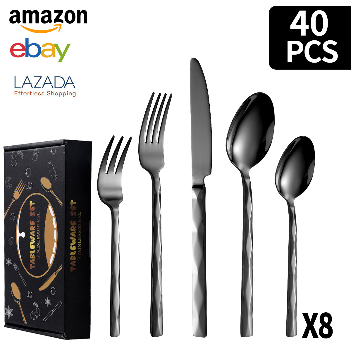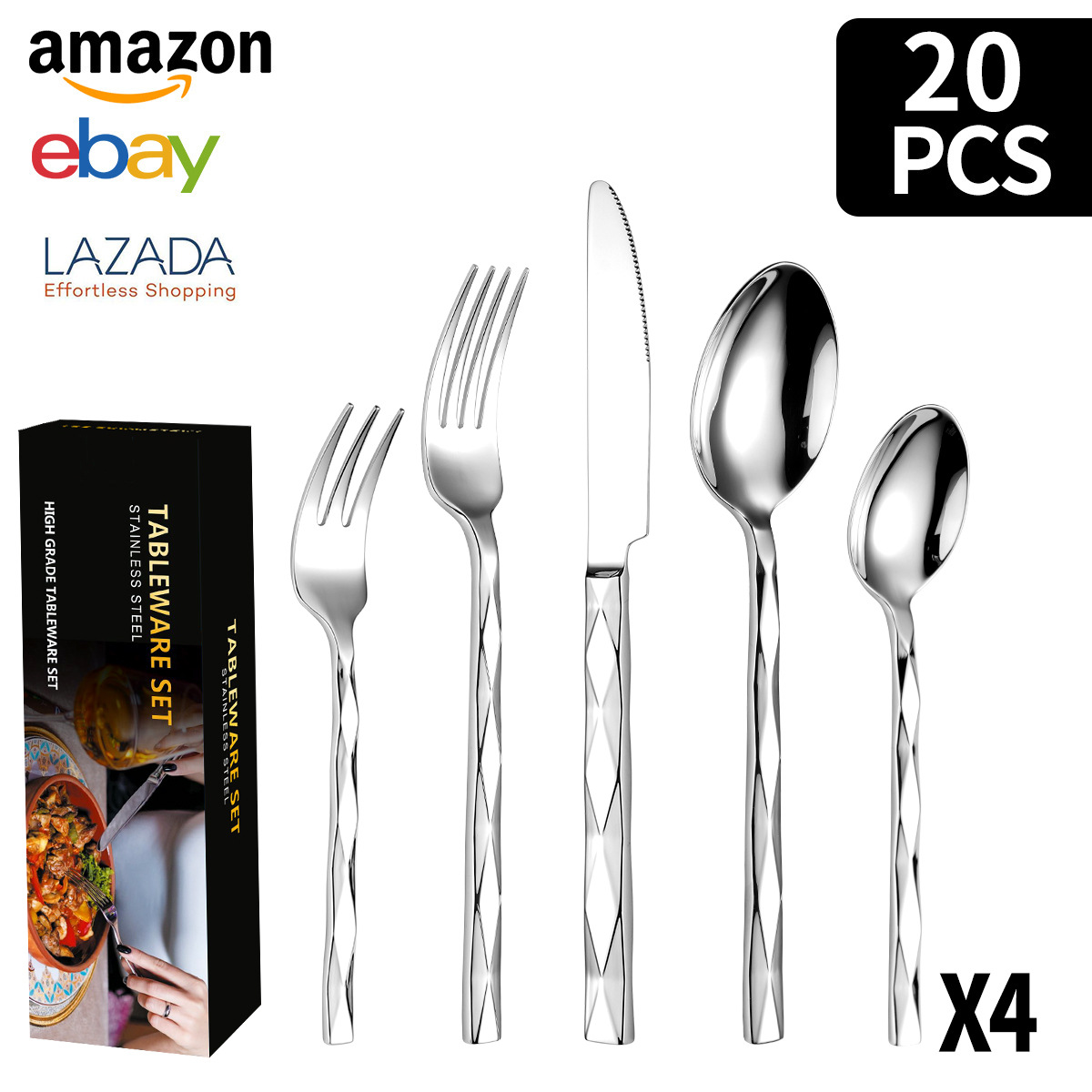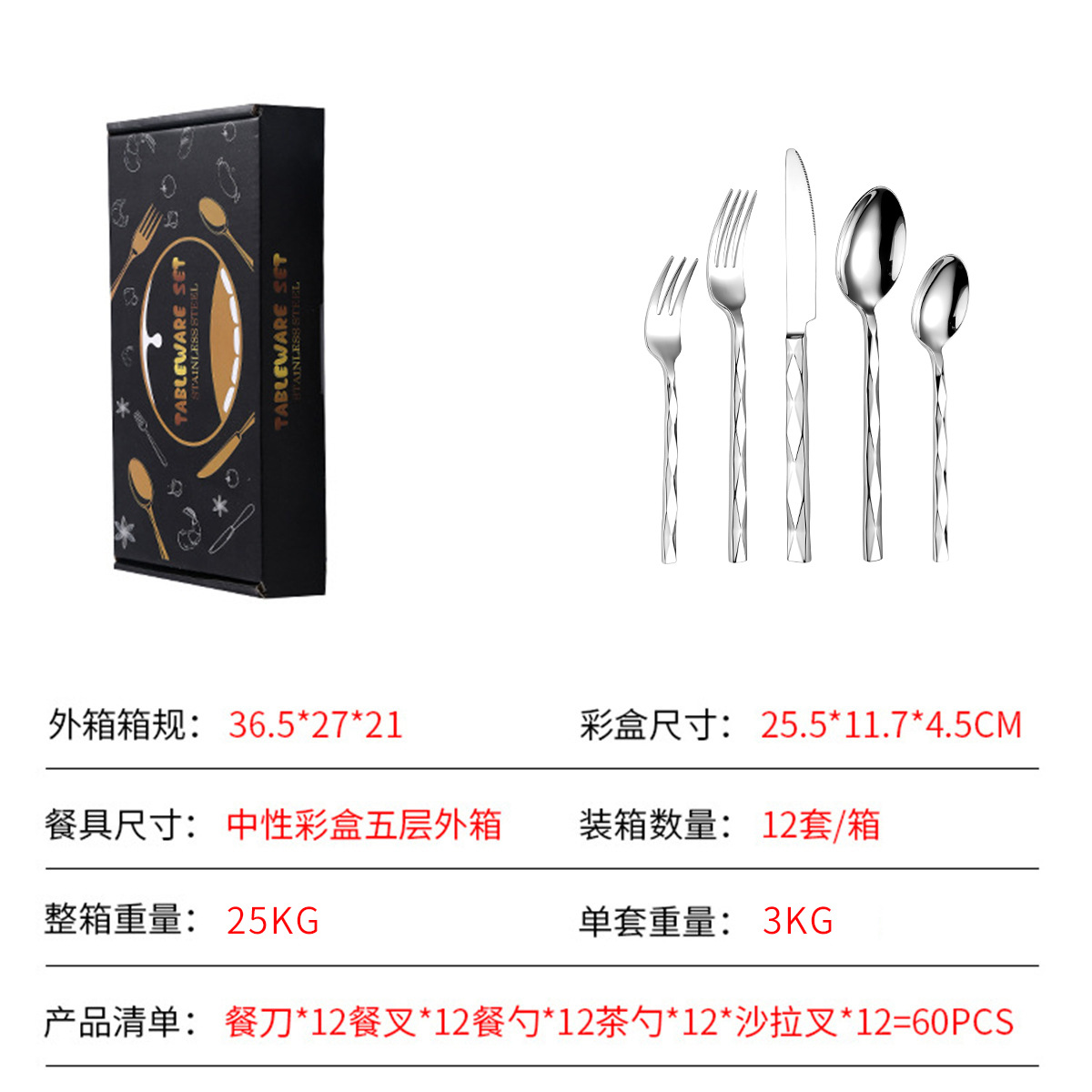 Cross-Border Prismatic 20/30/40/60 Piece Set Diamond Stereo Accessible Luxury Stainless Steel Tableware Steak Knife, Fork and Spoon