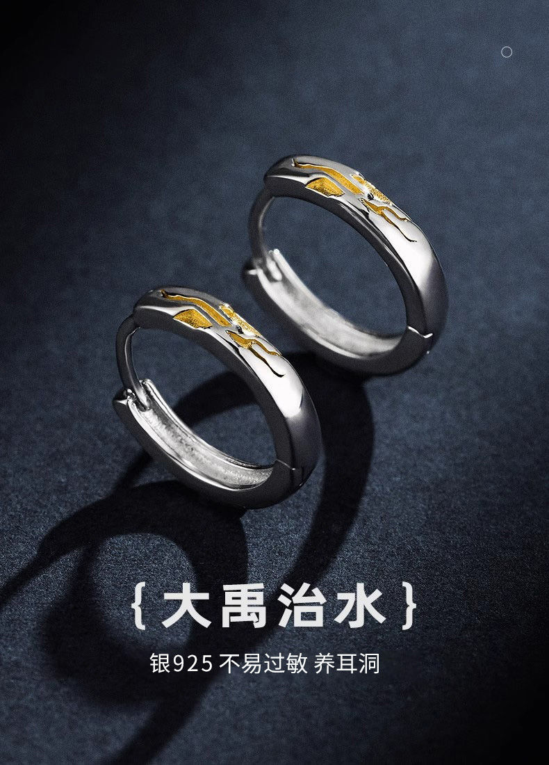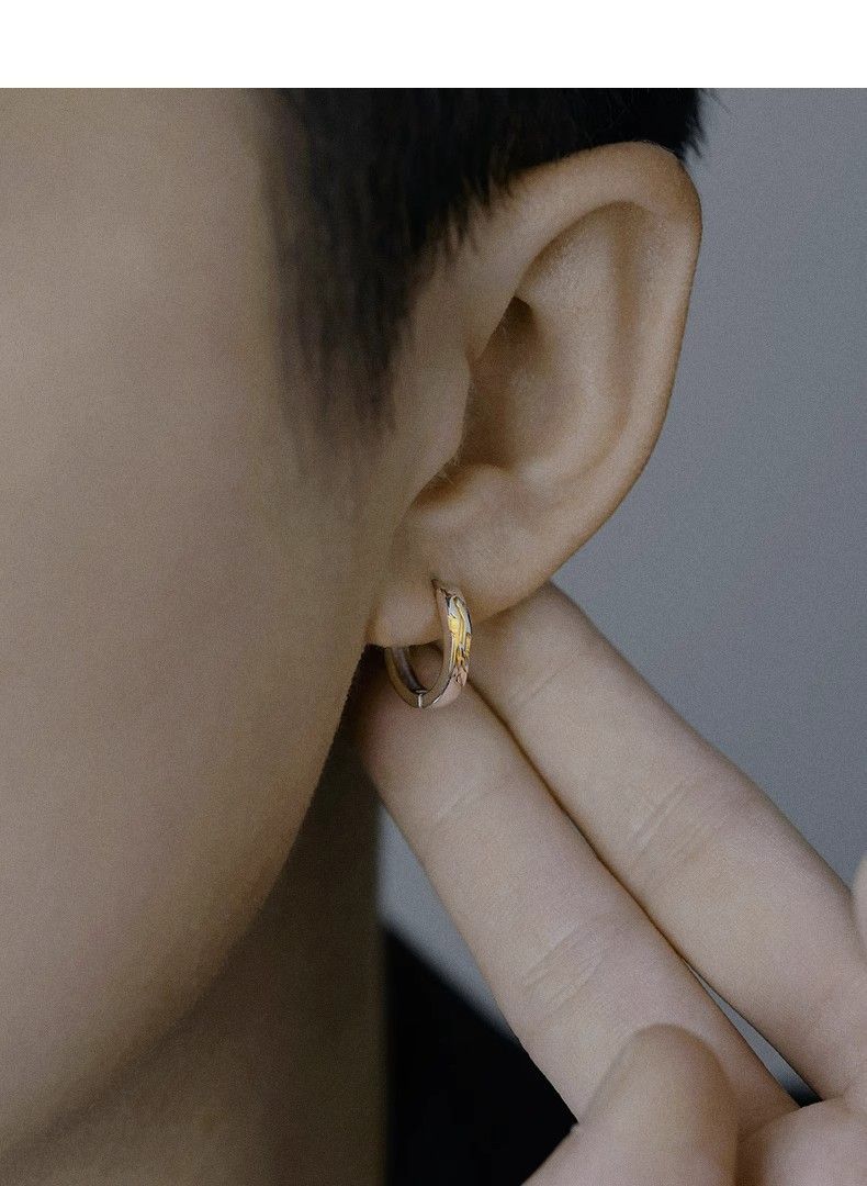 S925 Sterling Silver Dayu Water Treatment Ear Studs Men's Earrings Men's High-end Feeling Faggotty Handsome Trendy Men's Light Luxury Ear Pole Ear Ring