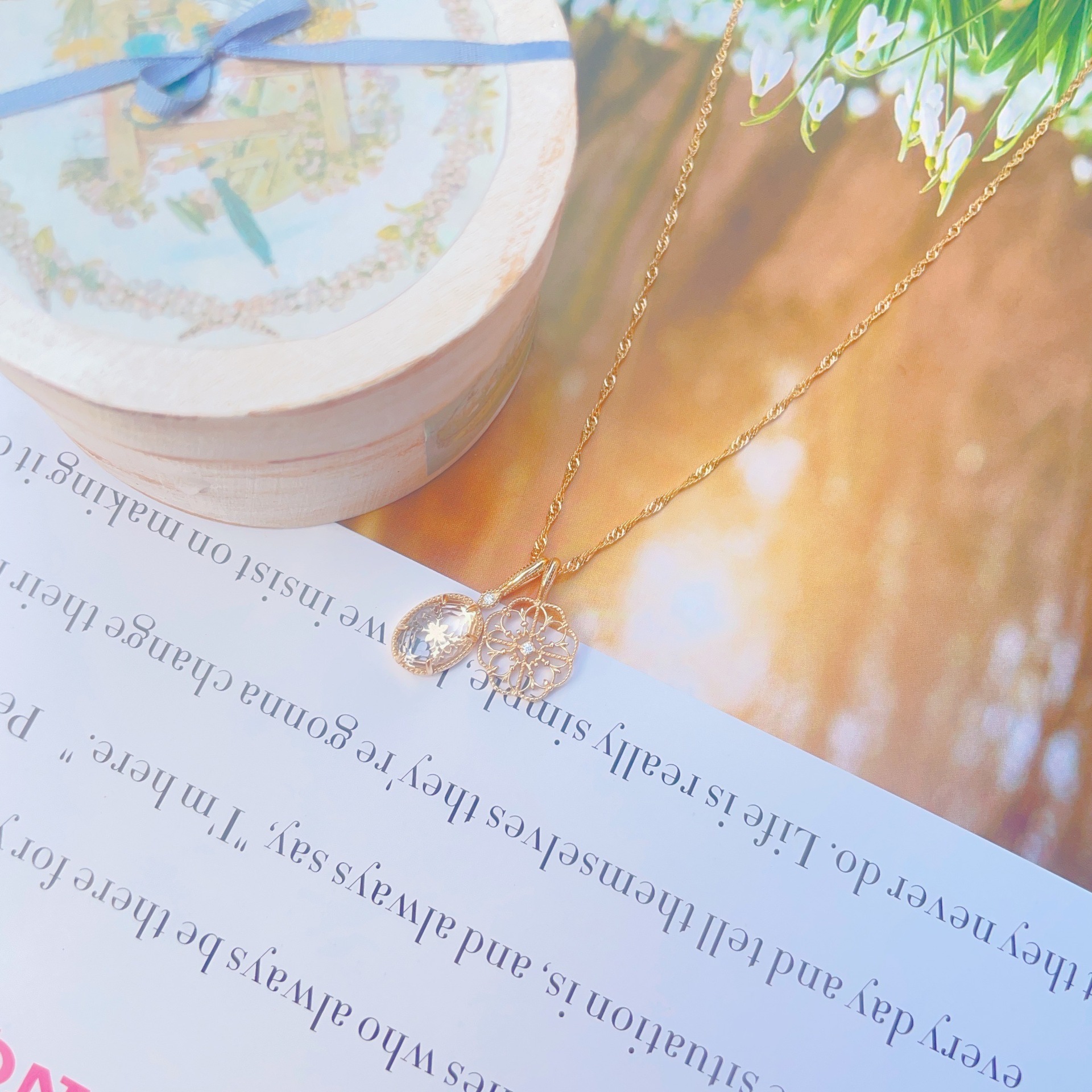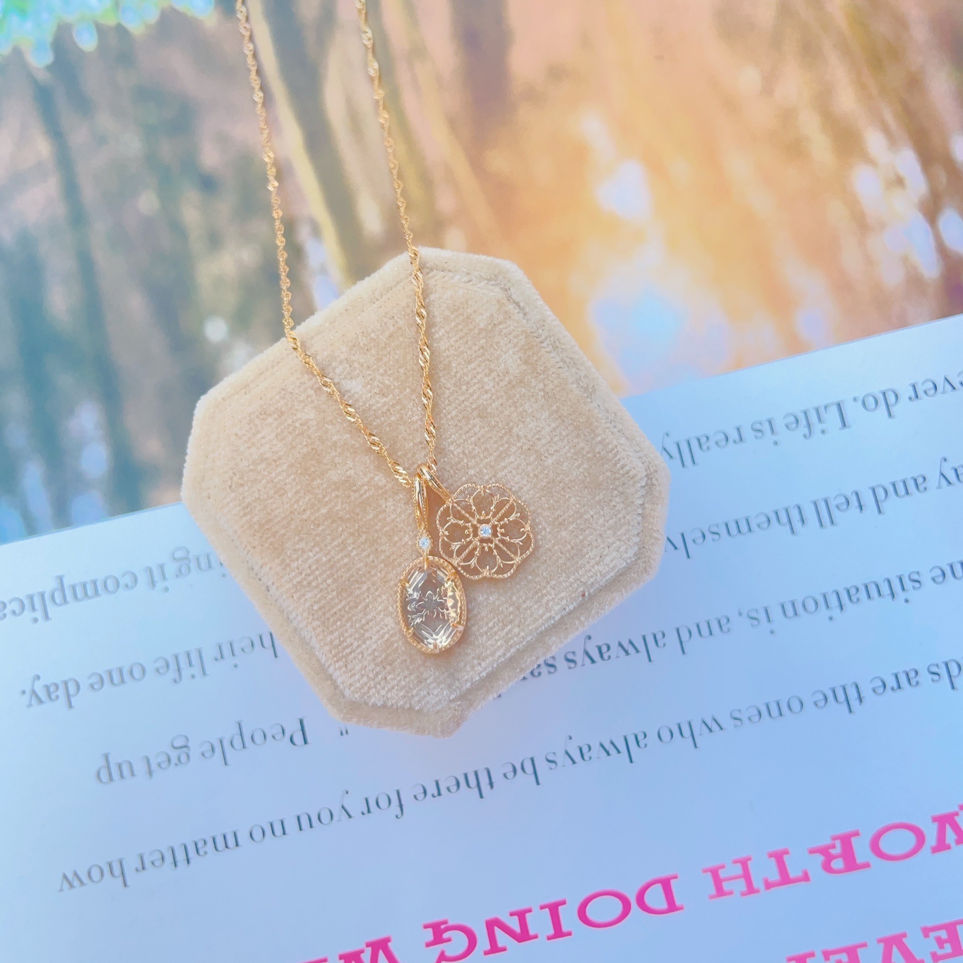 Japanese Aagete Vintage Hollow Pendant Necklace Dragon Heart Same Style Clavicle Chain 925 Sterling Silver Gold Plated Natural Crystal