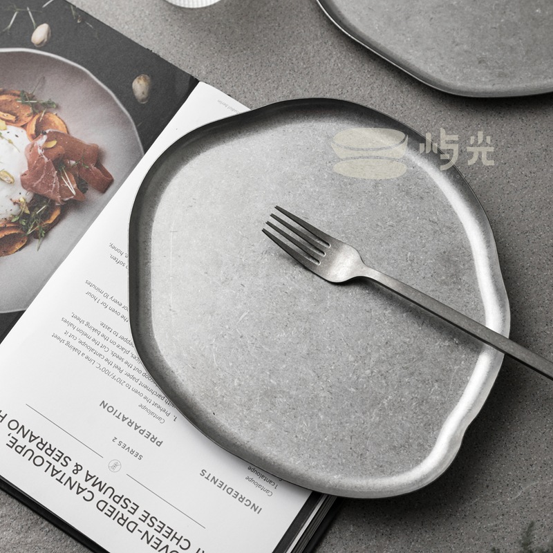Yuguang Retro High-End 304 Stainless Steel Plate Asymmetrical Edge Snack Nut Storage Tray Ornaments Jewelry Tray