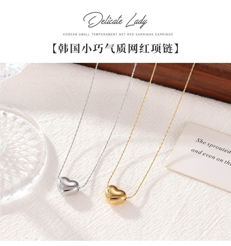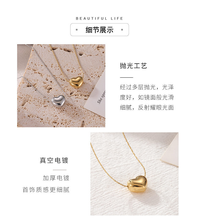 Titanium steel pendant does not fade women's four seasons all-match love zircon vacuum plating personality niche temperament simple necklace