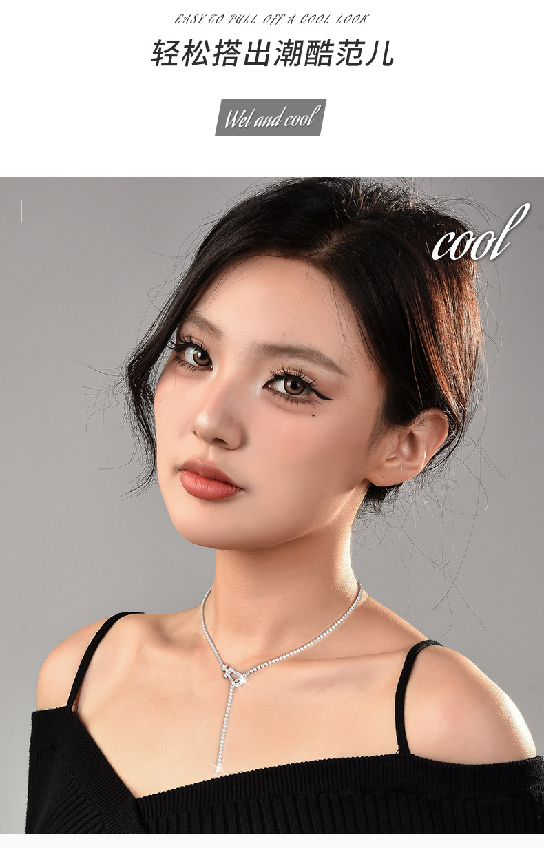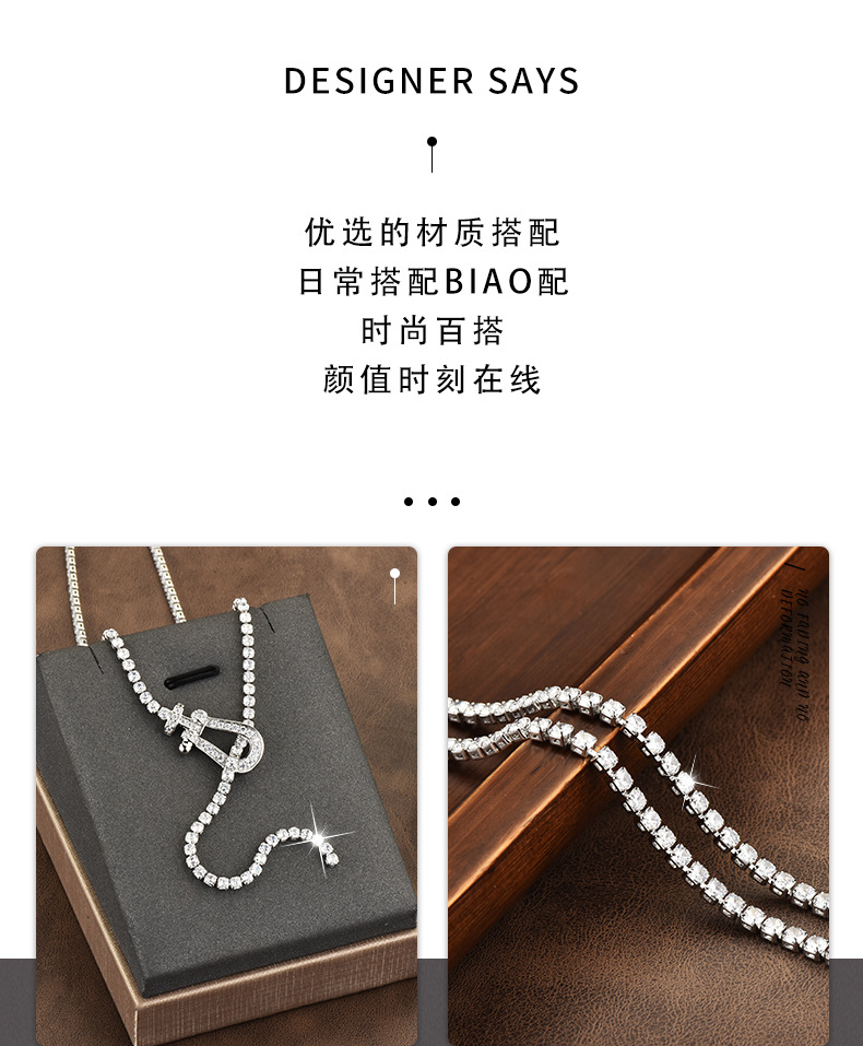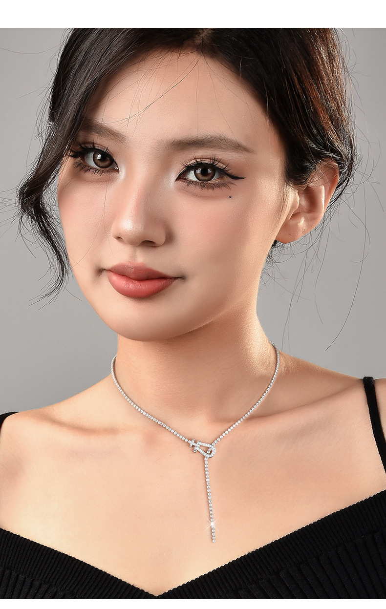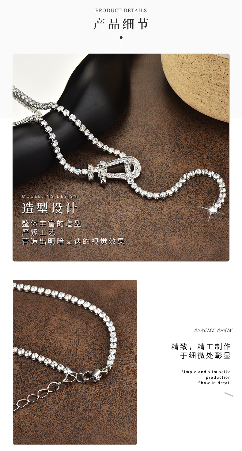 Color: Horseshoe buckle zircon chain necklace white gold