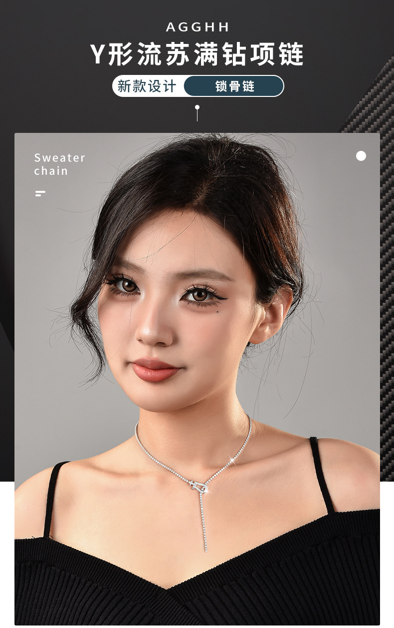 Factory direct horseshoe buckle zircon chain temperament necklace female Korean fashion diamond chain clavicle chain wholesale full diamond pendant