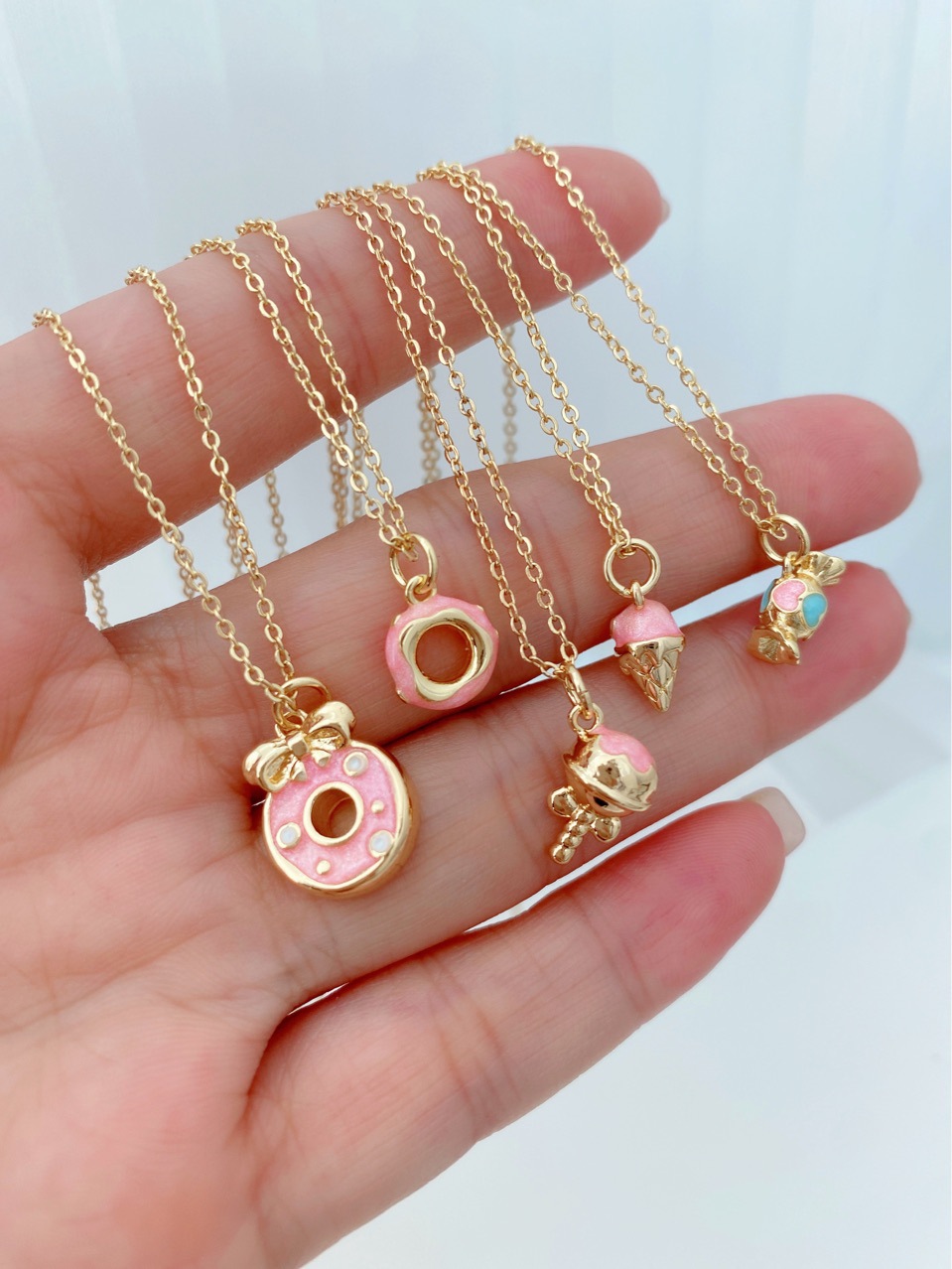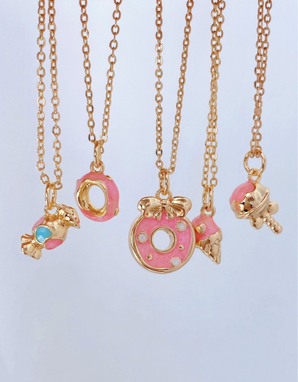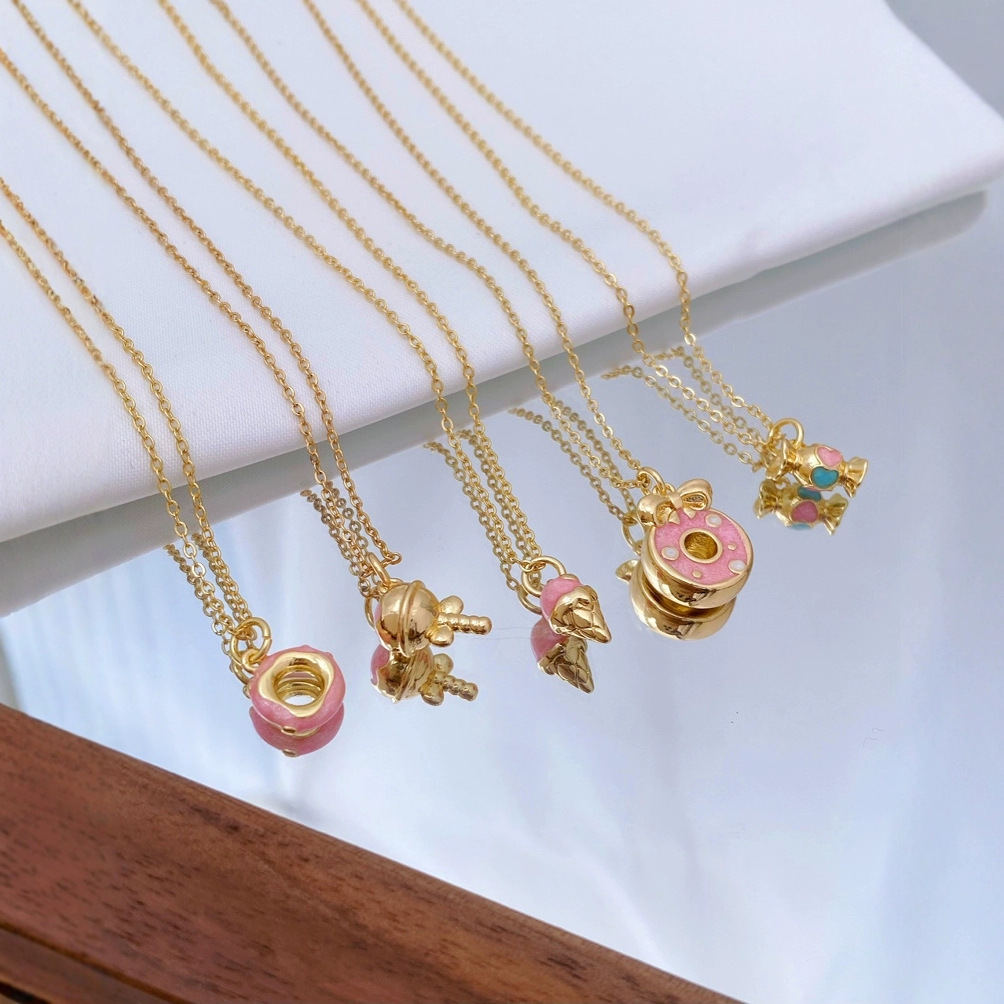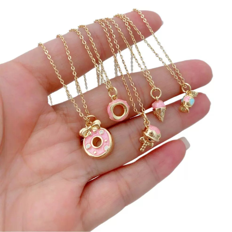 Autumn and Winter New Oil Dropping Cute Donut Candy DIY Handmade Beaded Jewelry Accessories Pendant Necklace Women