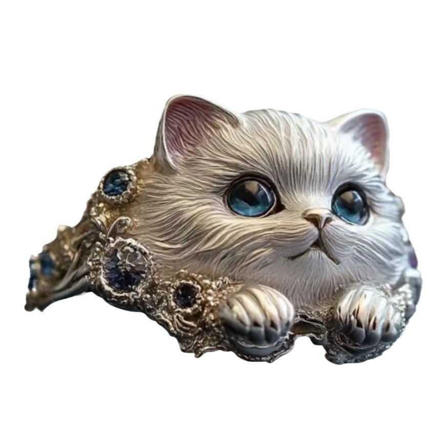 Exquisite kitten ring with unique personality, simple and elegant ins style, high-end sense, niche, original design, all-match