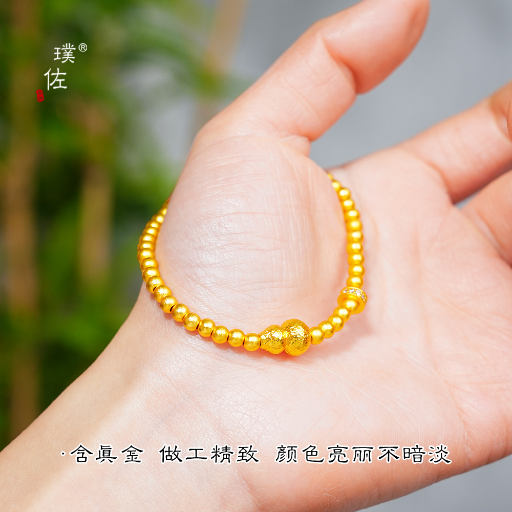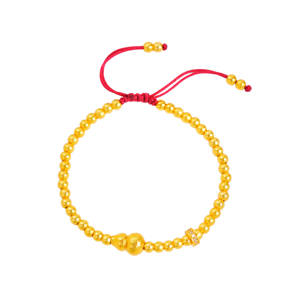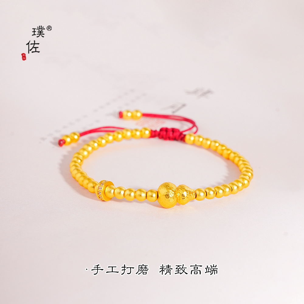 Puzuo Gold Shop Same Style Sha Jin Gourd Gold Beads Red Rope Bracelet Women's New Chinese Style Retro Red Rope Hand Rope Jewelry Women