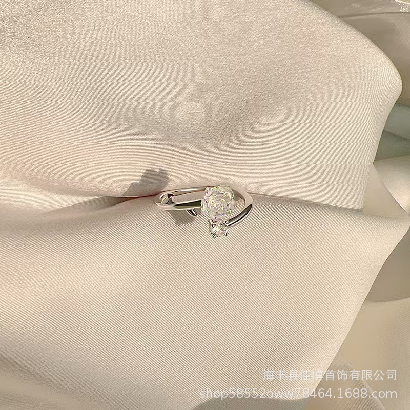 Cross-border AliExpress s925 sterling silver gentle camellia opening hand jewelry women fashion luxury rose ring wholesale