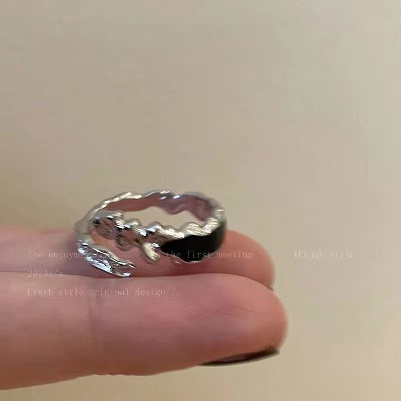 Black Drop Glaze Open Ring Women's Summer Ins Niche High-end Design Finger Ring Fashionable Personalized All-match Ring