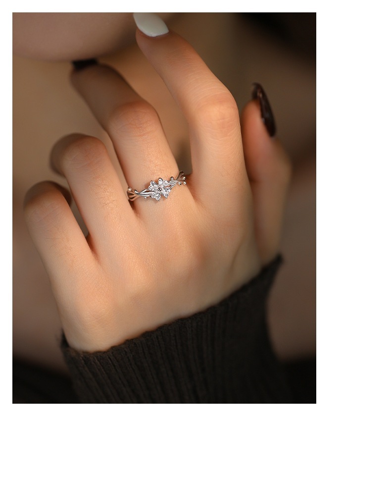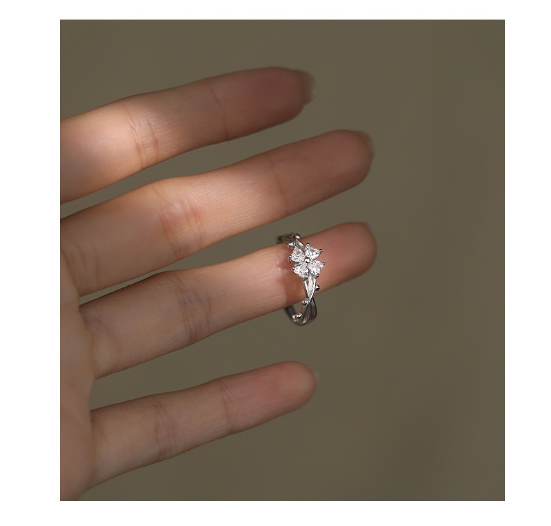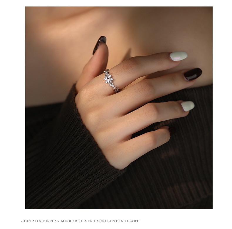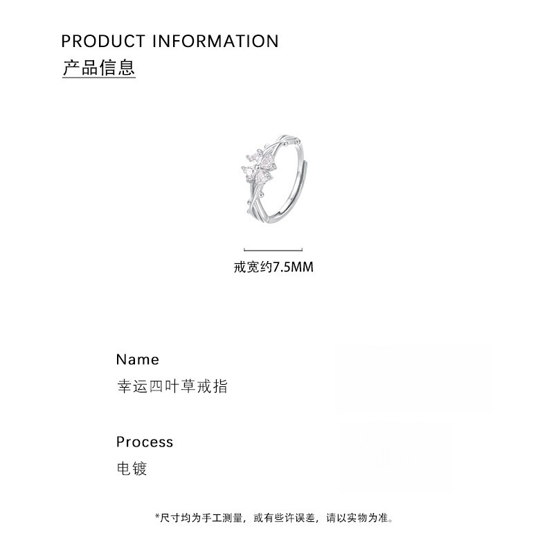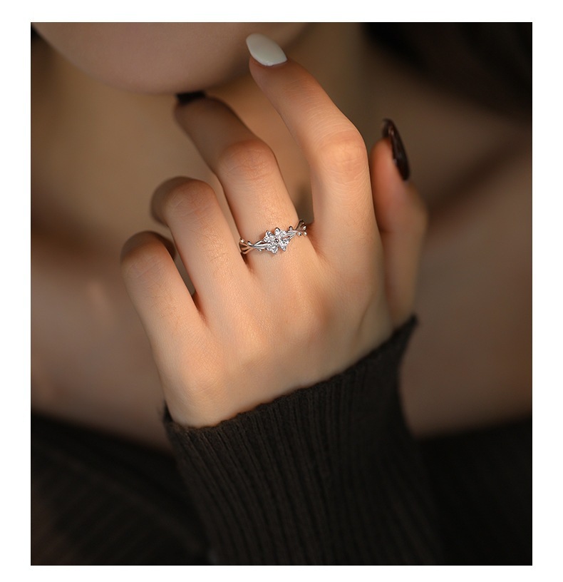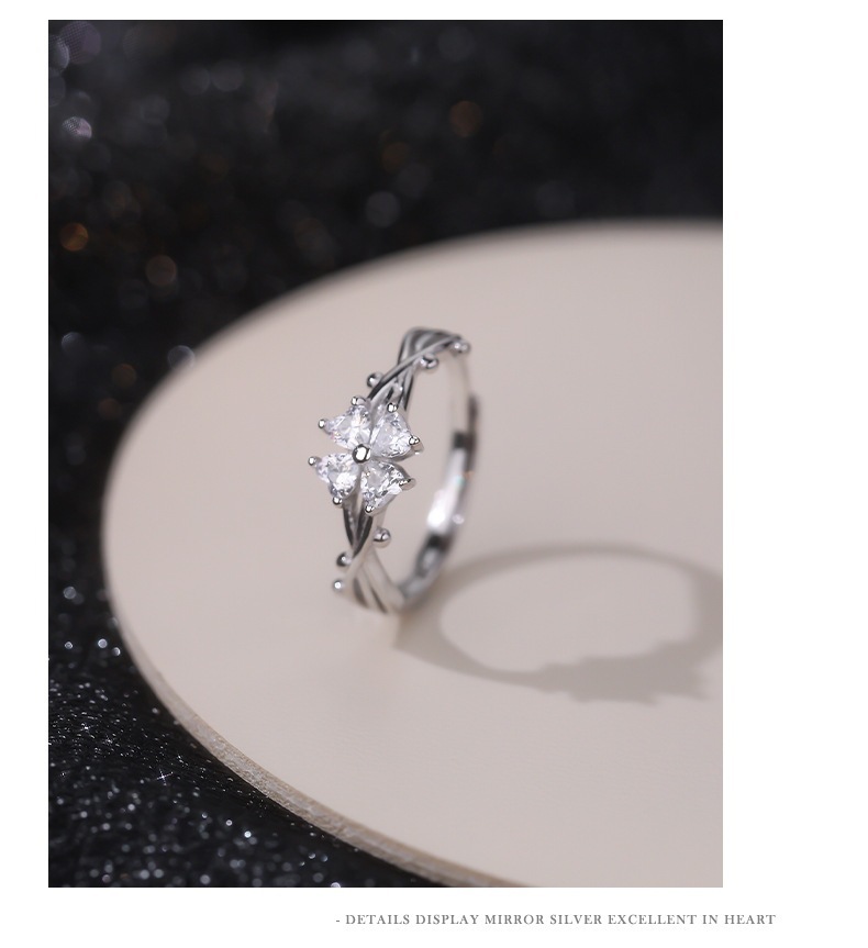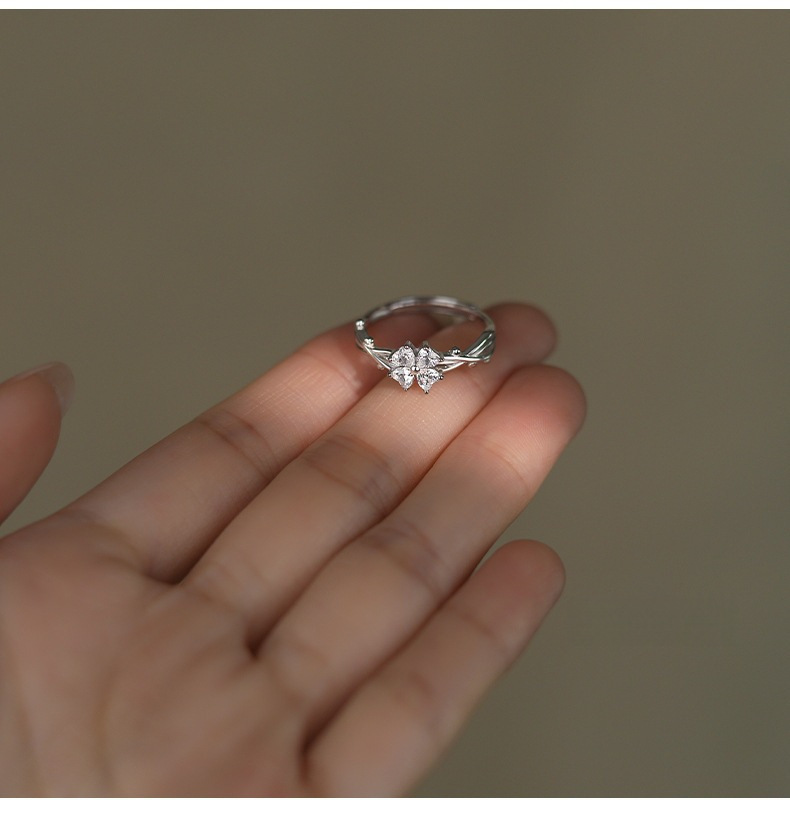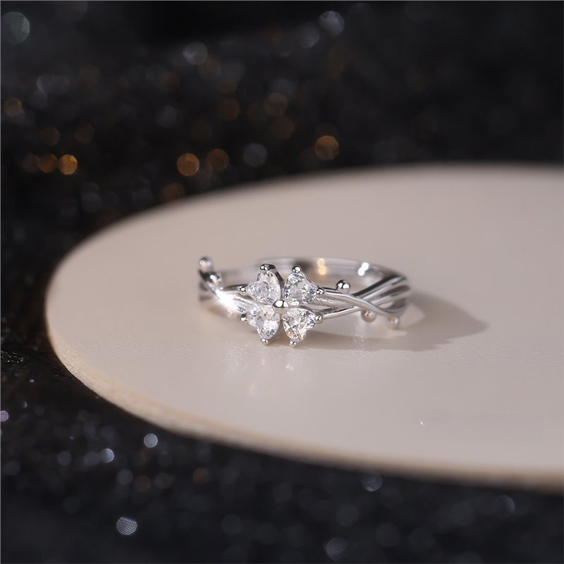 Popular Sweet Four-leaf Clover Ring Women's Diamond High-grade Light Luxury Temperament Adjustable Dieting Finger Ring Birthday Gift Jewelry