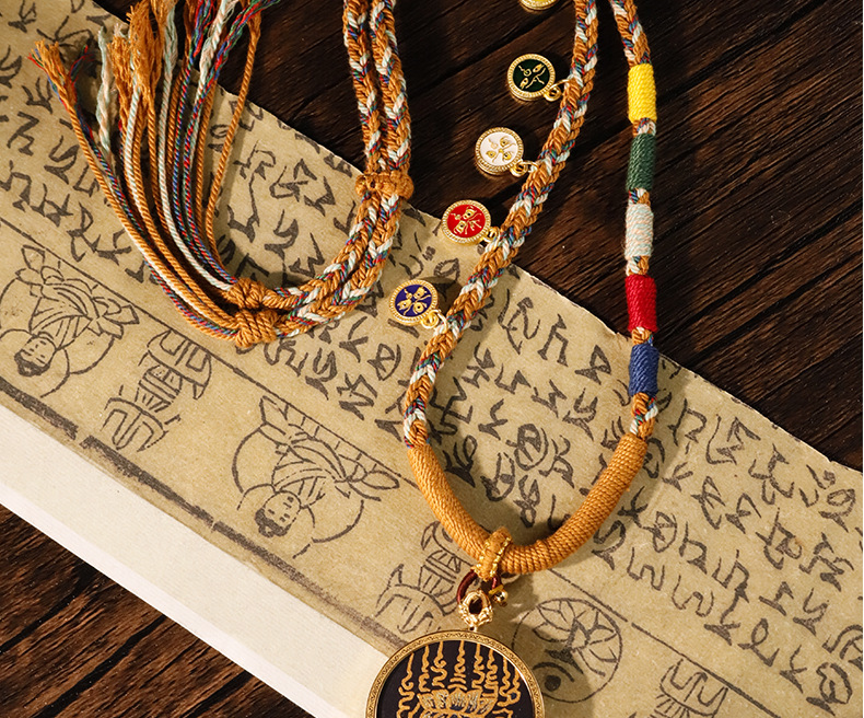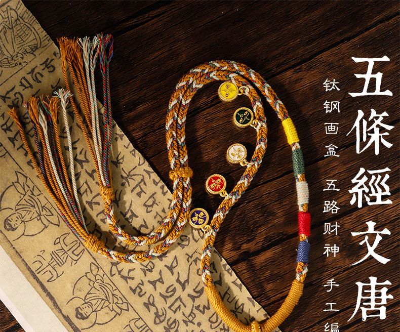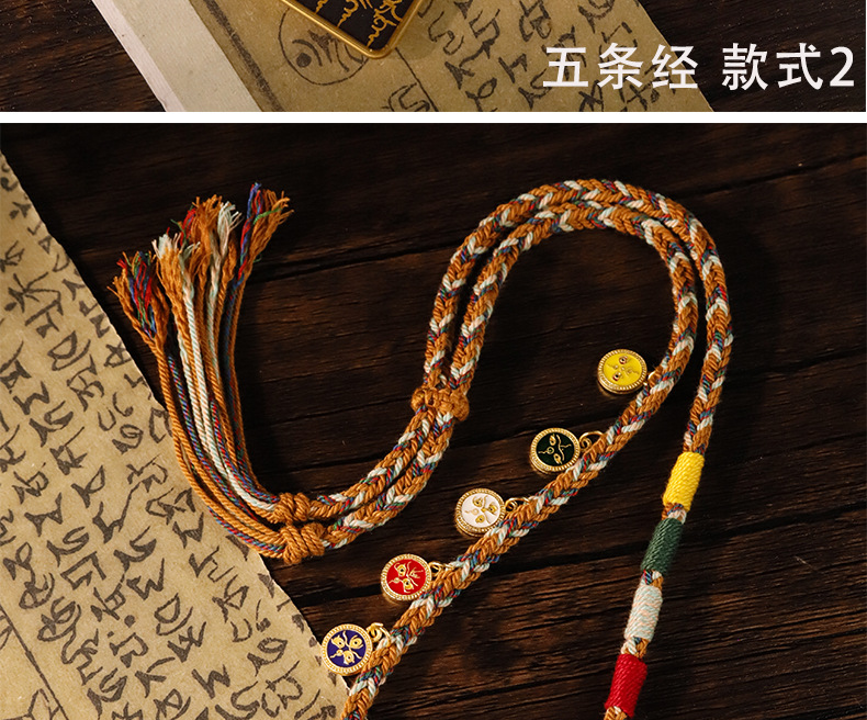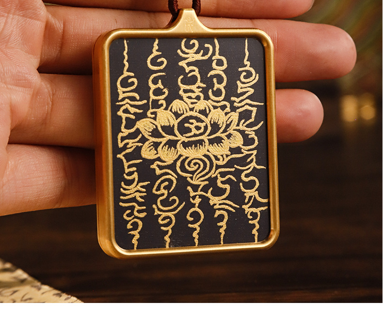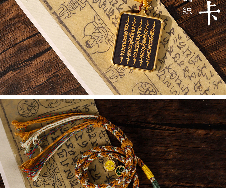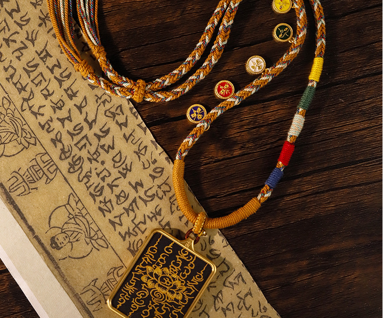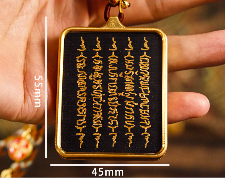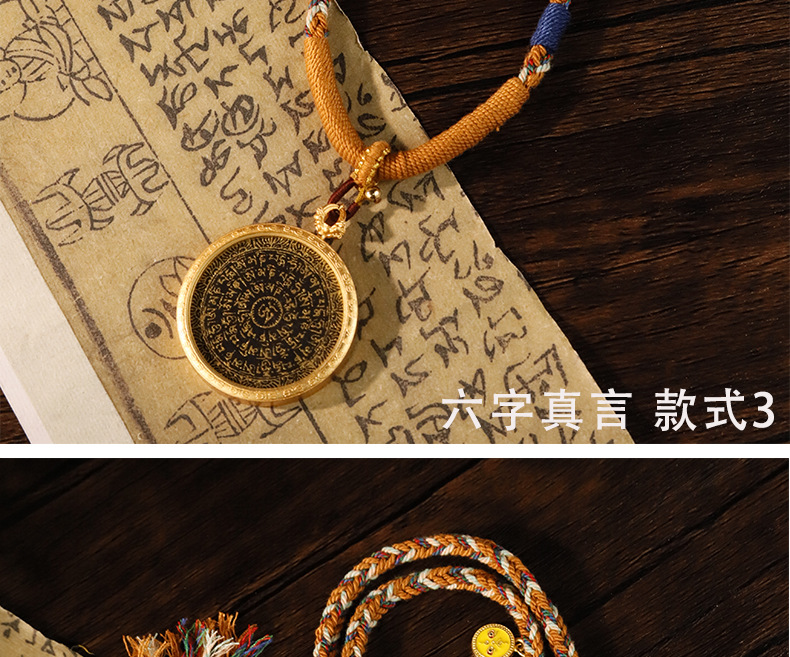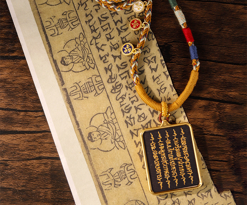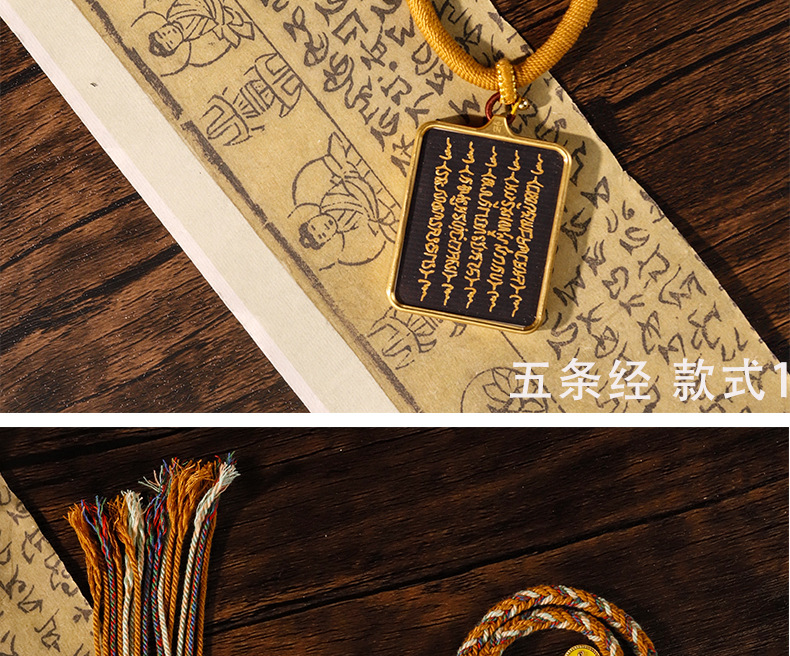 Pure hand-painted five scriptures six-character truth Thangka pendant Buddha necklace carry-on Thangka sweater chain accessories text play