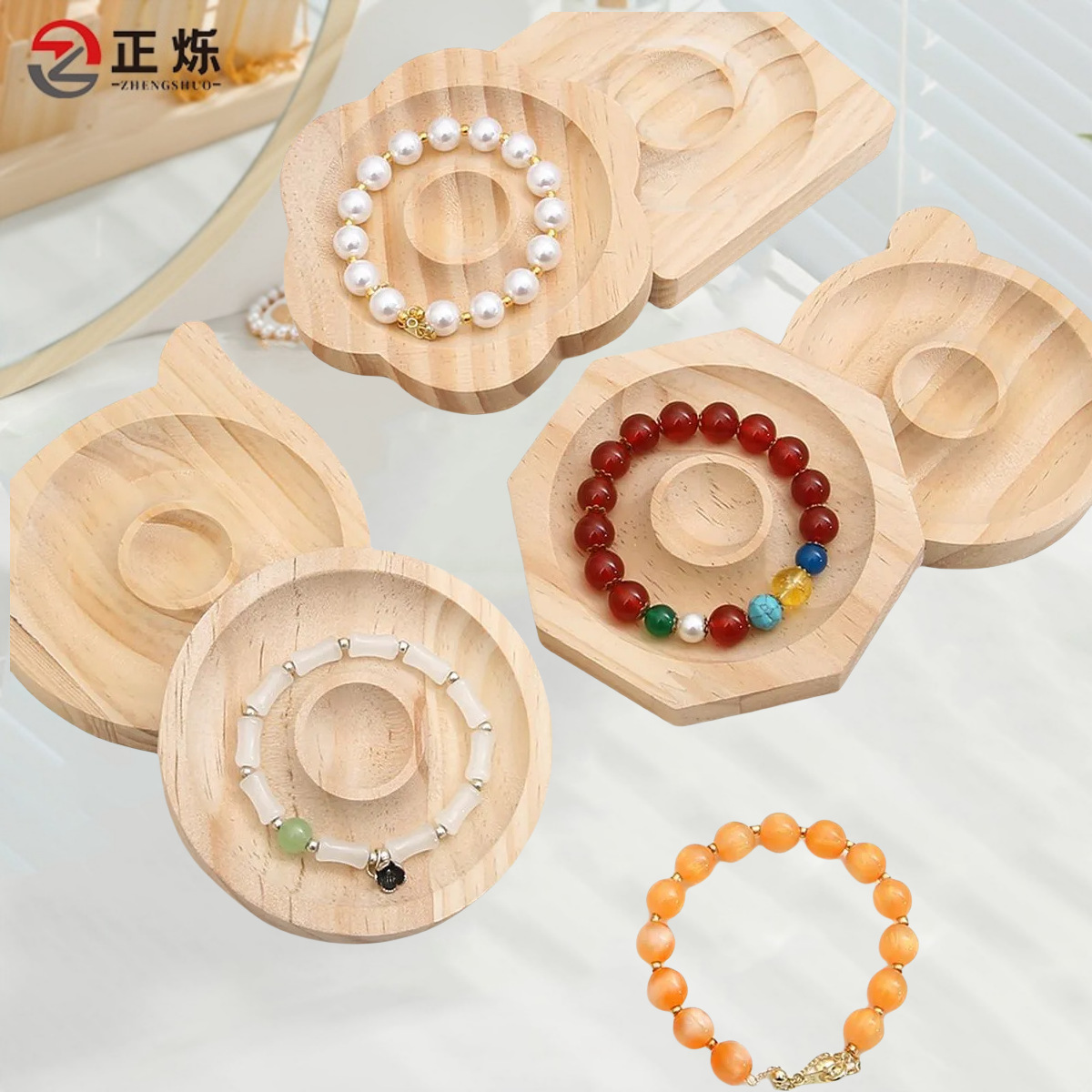 Solid Wood Jewelry Display Plate Jewelry Design Plate Play with Beads Handmade DIY Material Handstring Beads Bracelet Tray