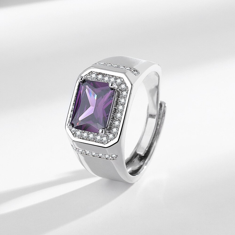 Cross-border Hot Selling Fashion Aggressive Personality Men's Bracelet Simulation Sapphire Men's Open Ring Platinum Plated Ring
