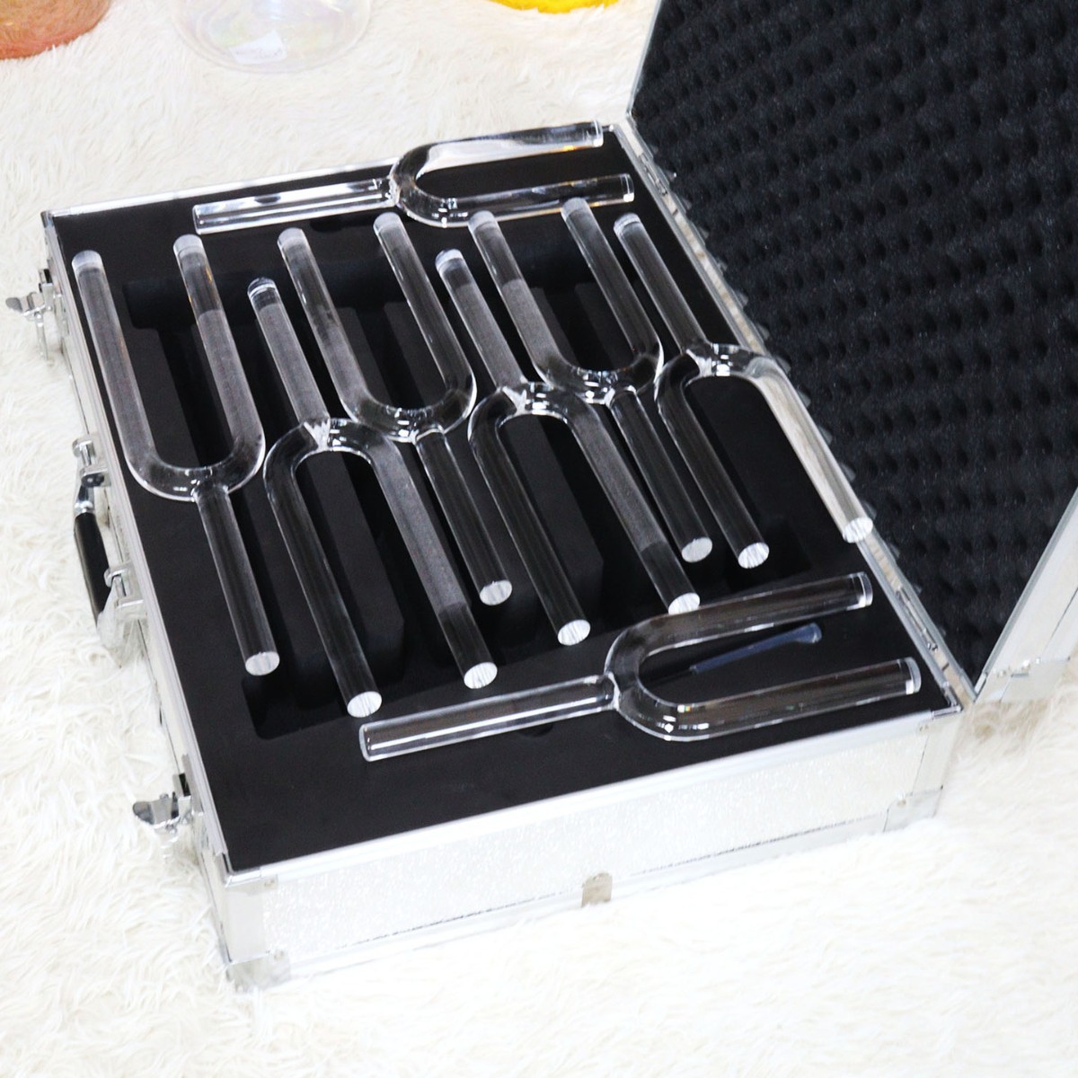 Natural Crystal Tuning Fork 432Hz Transparent Tuning Fork 8 Pieces 10-20mm Diameter Optional Meditation Healing Instrument