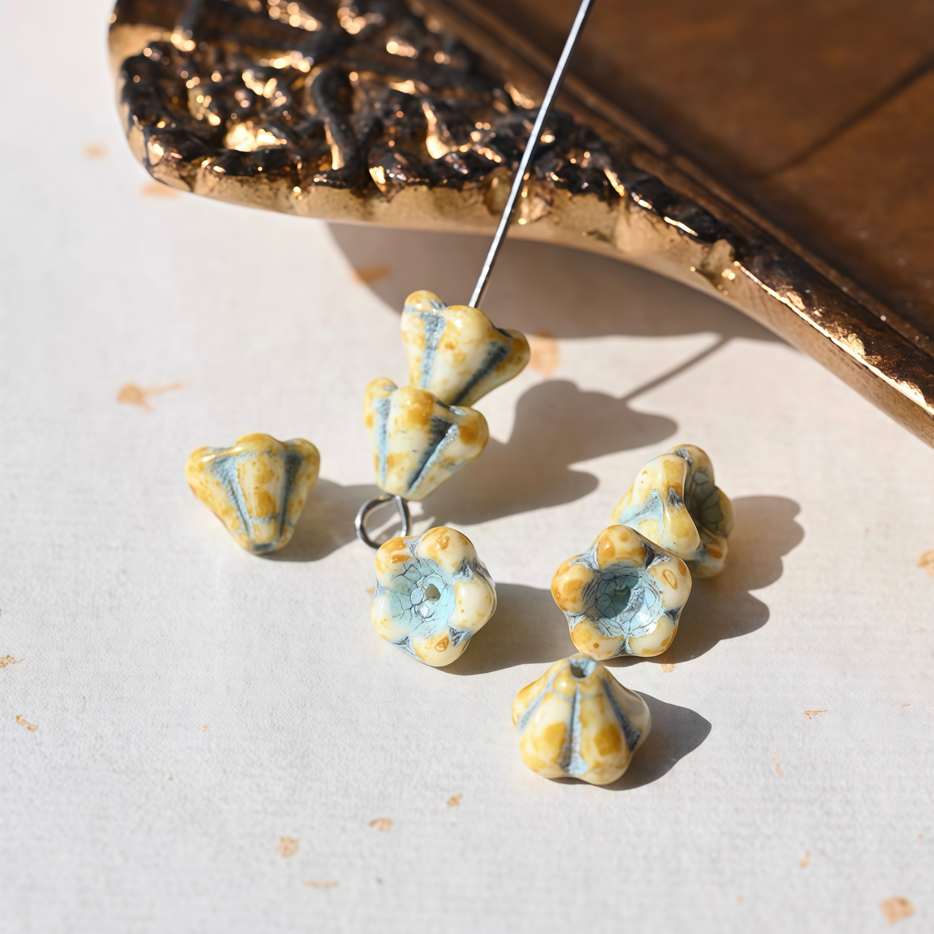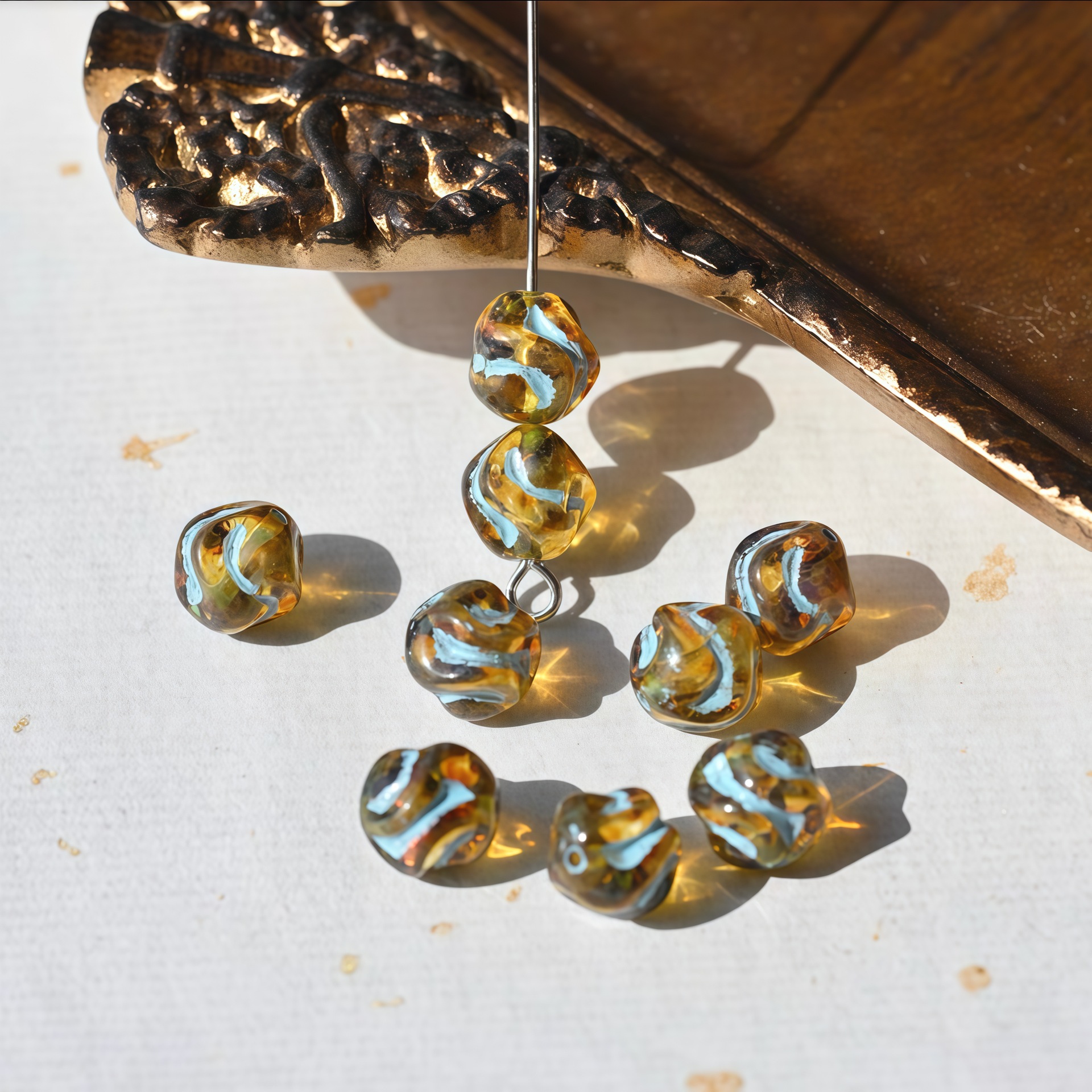 Color: 10x8mm picasso amber blue coffee beans 1 piece