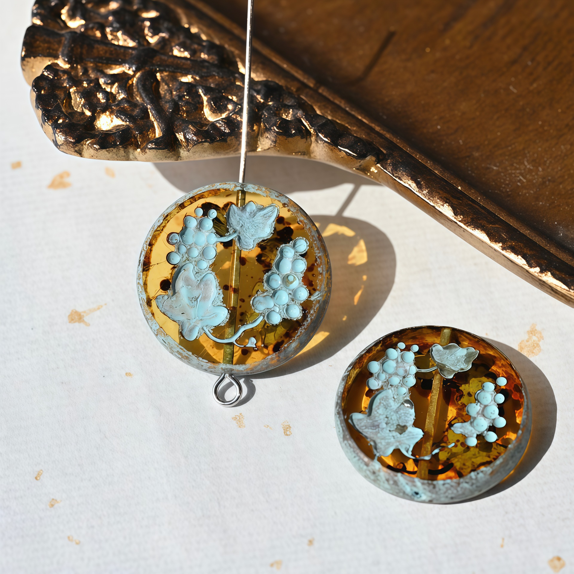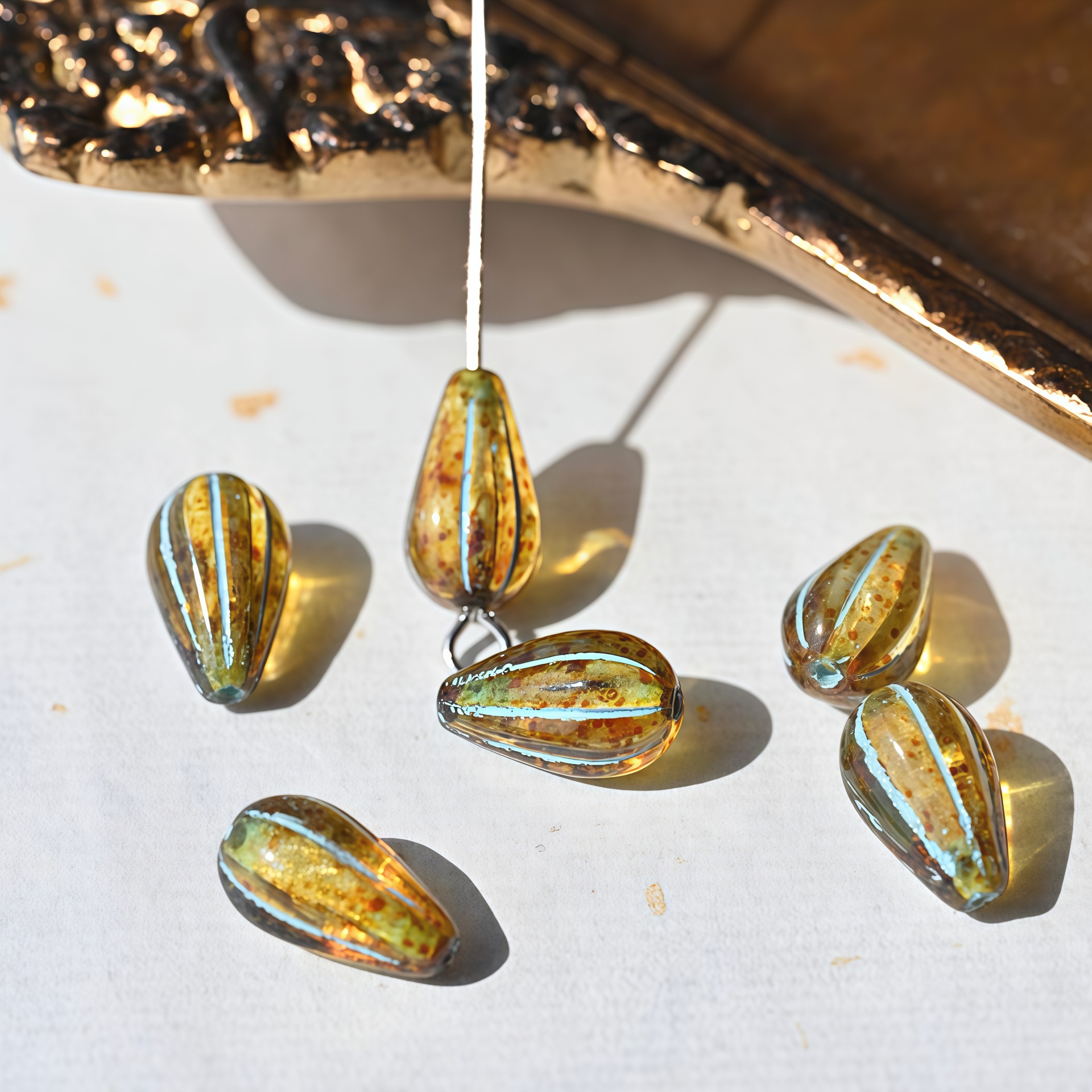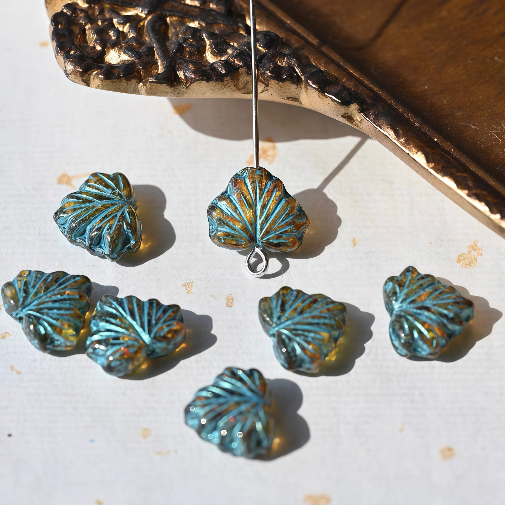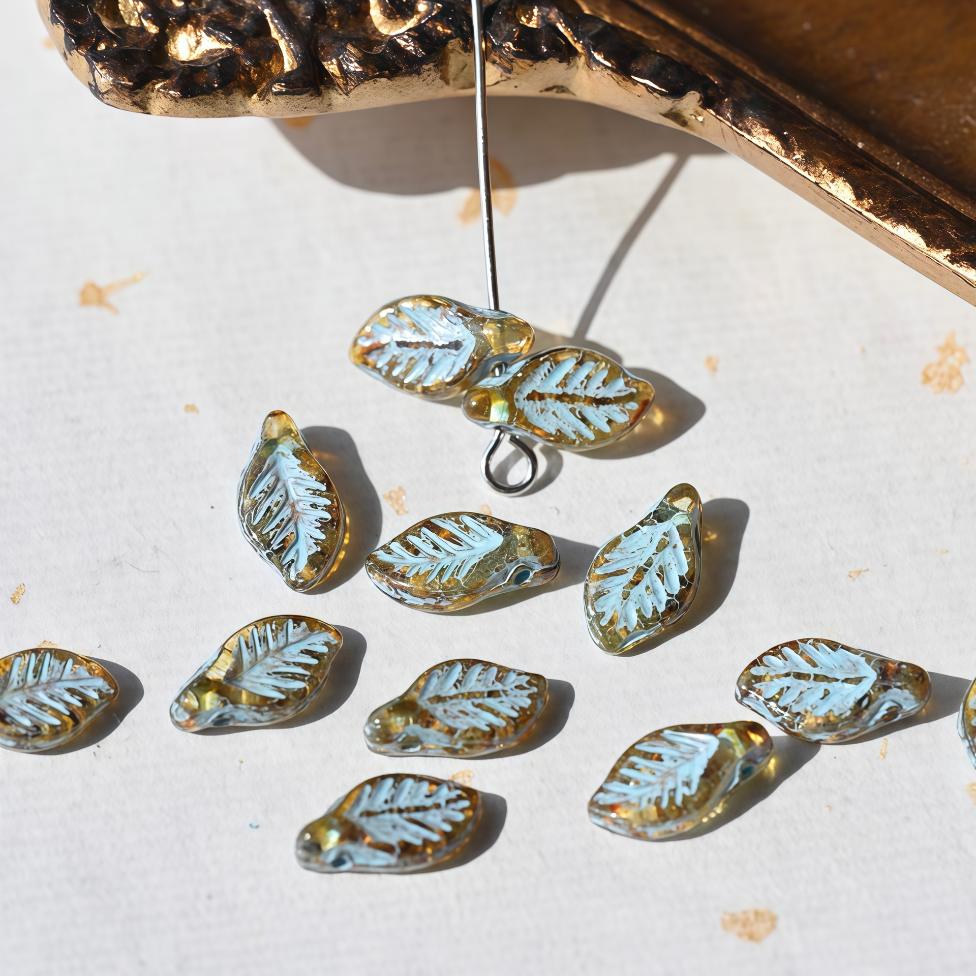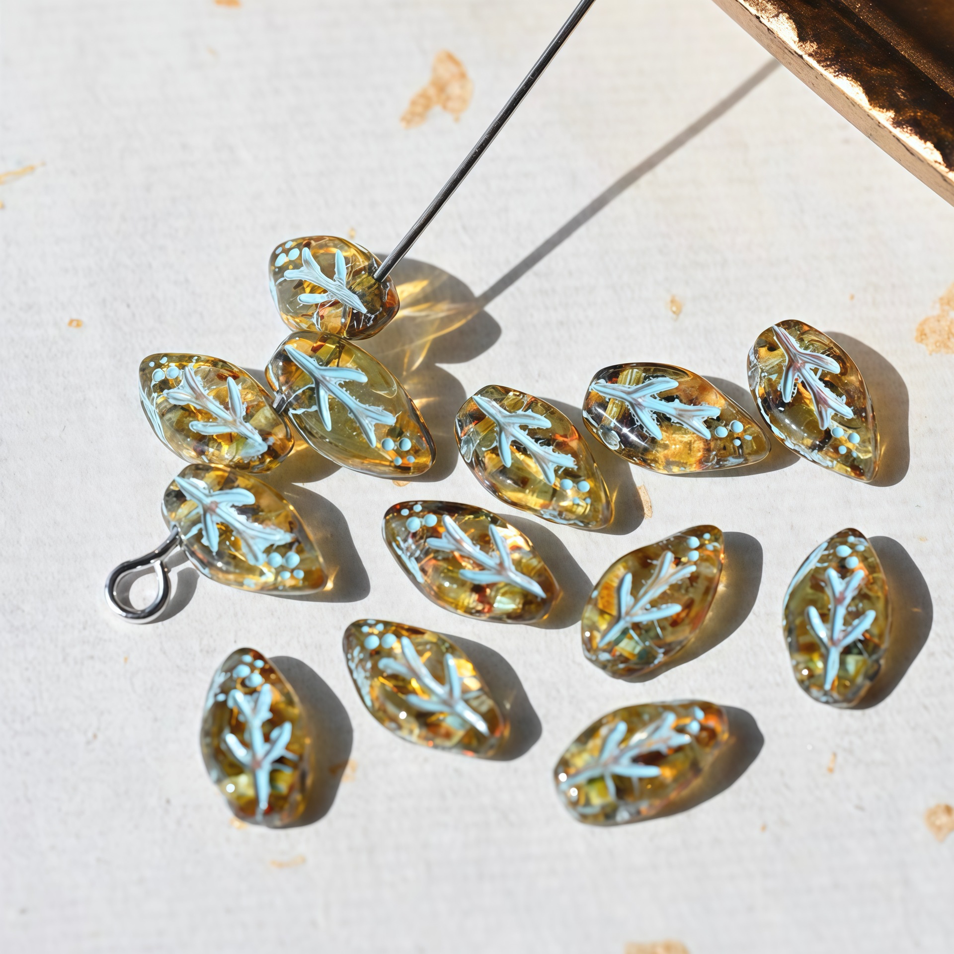 Color: 6x12mm amber painted blue bay leaf 2 pcs