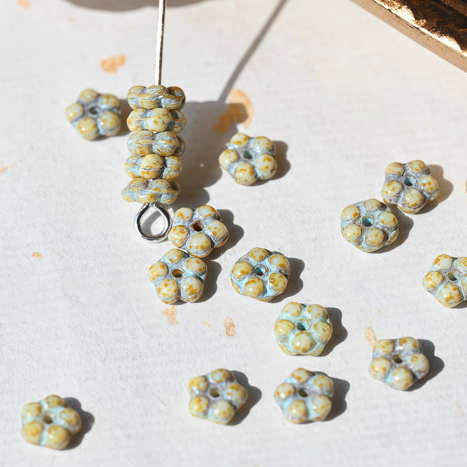 Color: 11mm cow bone painted blue cookie flower 1 piece