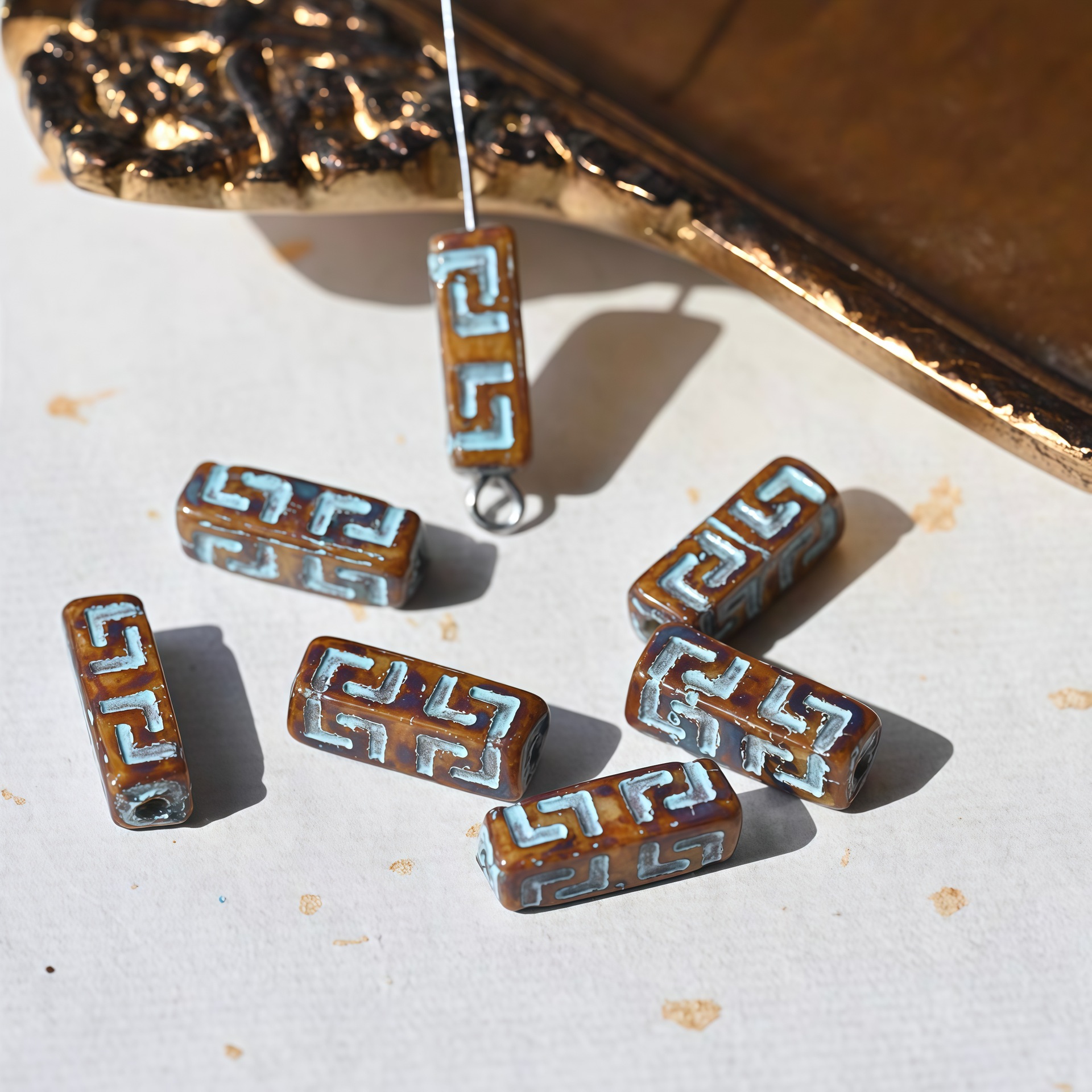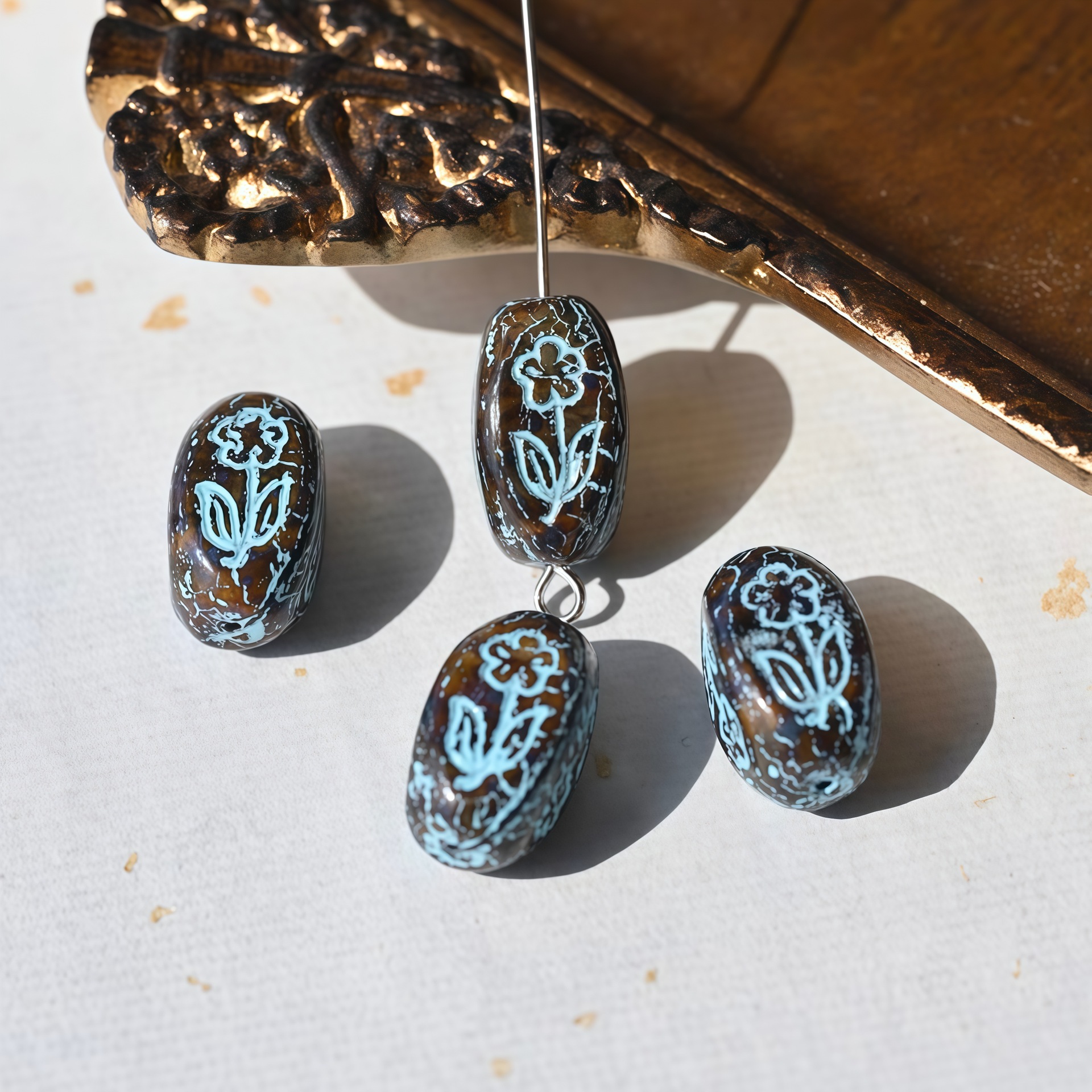 Color: 16x11mm dark coffee painted blue flower square column 1 piece