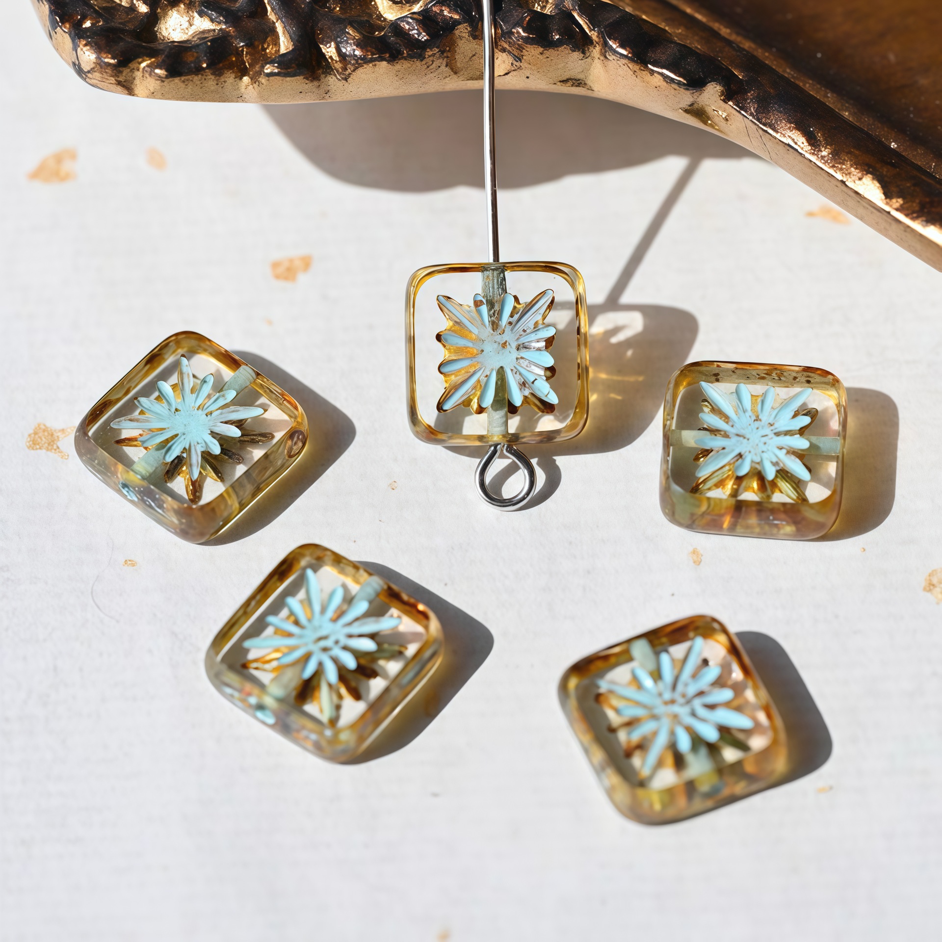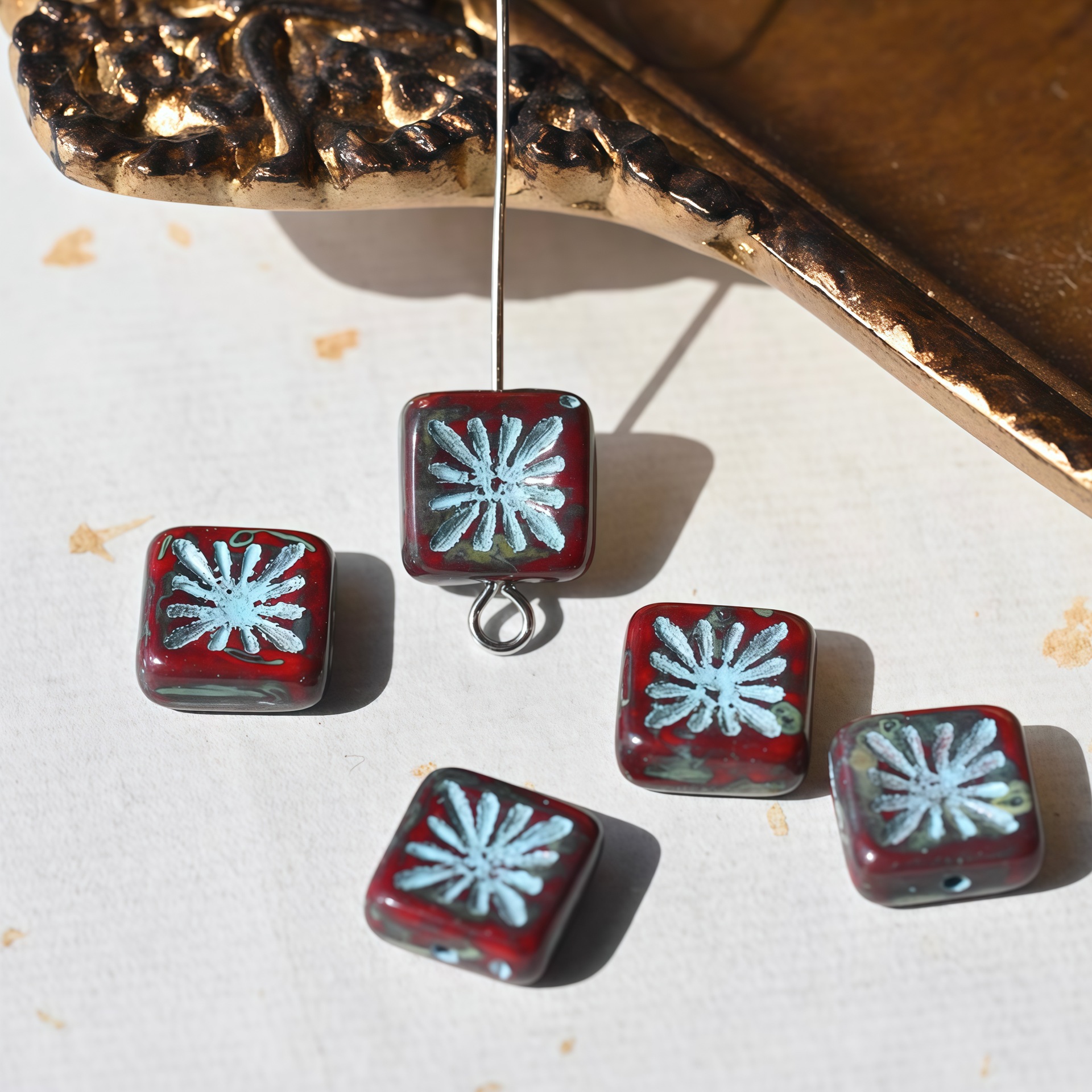 Color: 10mm picasso painted blue fireworks squares 1 piece