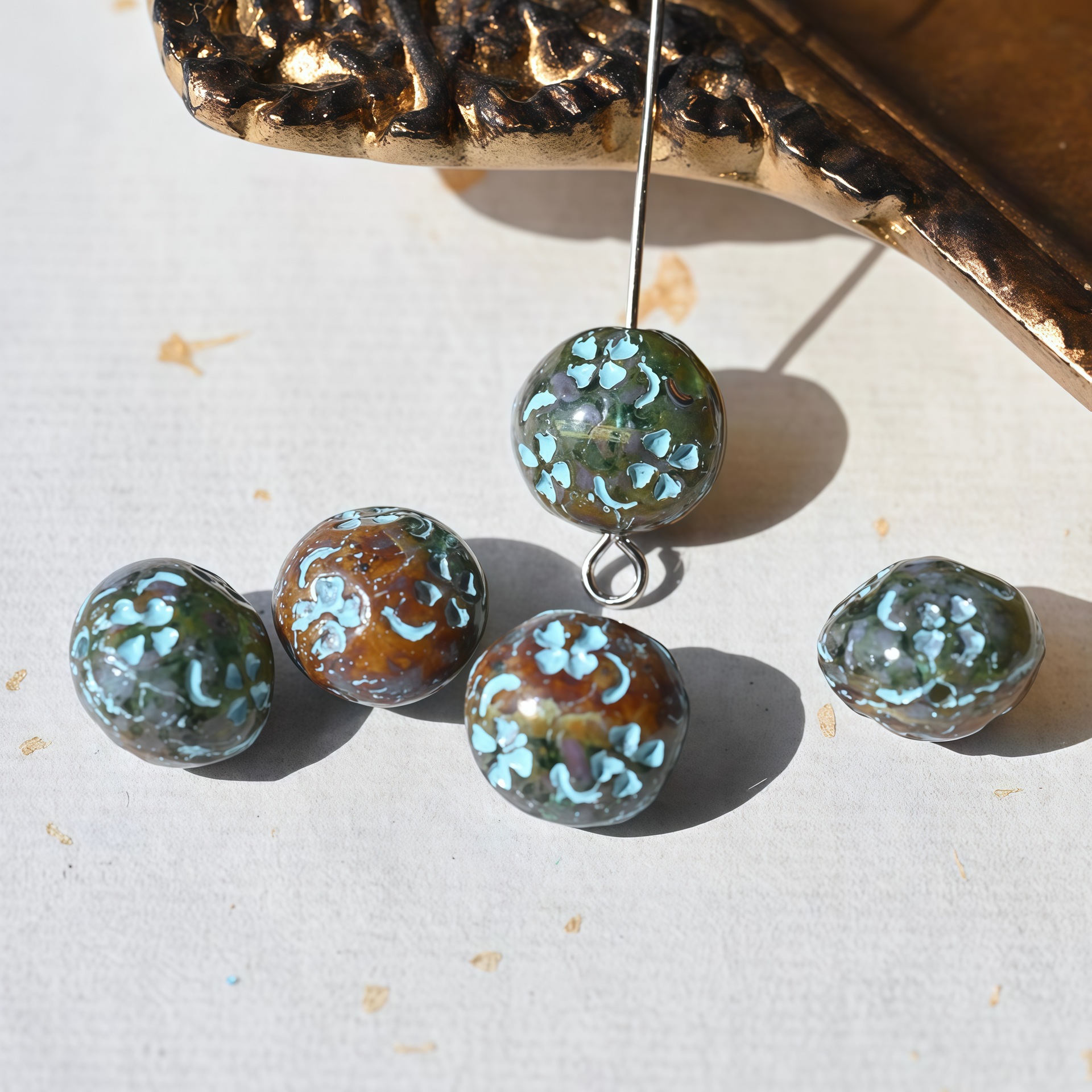 Color: 11mm transparent green coffee smudged blue embossed four-leaf clover 1 piece