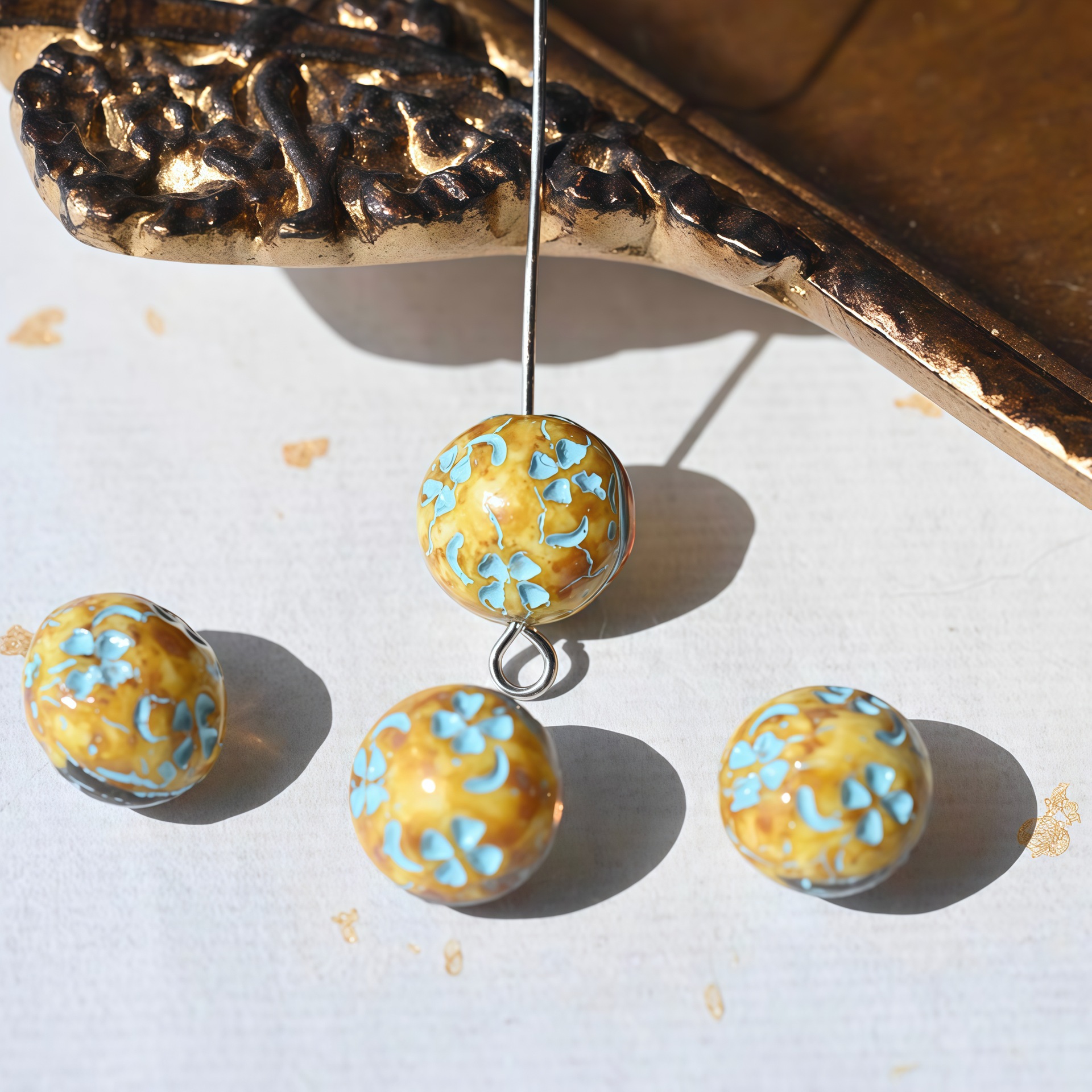 Color: 11mm beef bone amber smudged blue four-leaf clover 1 piece