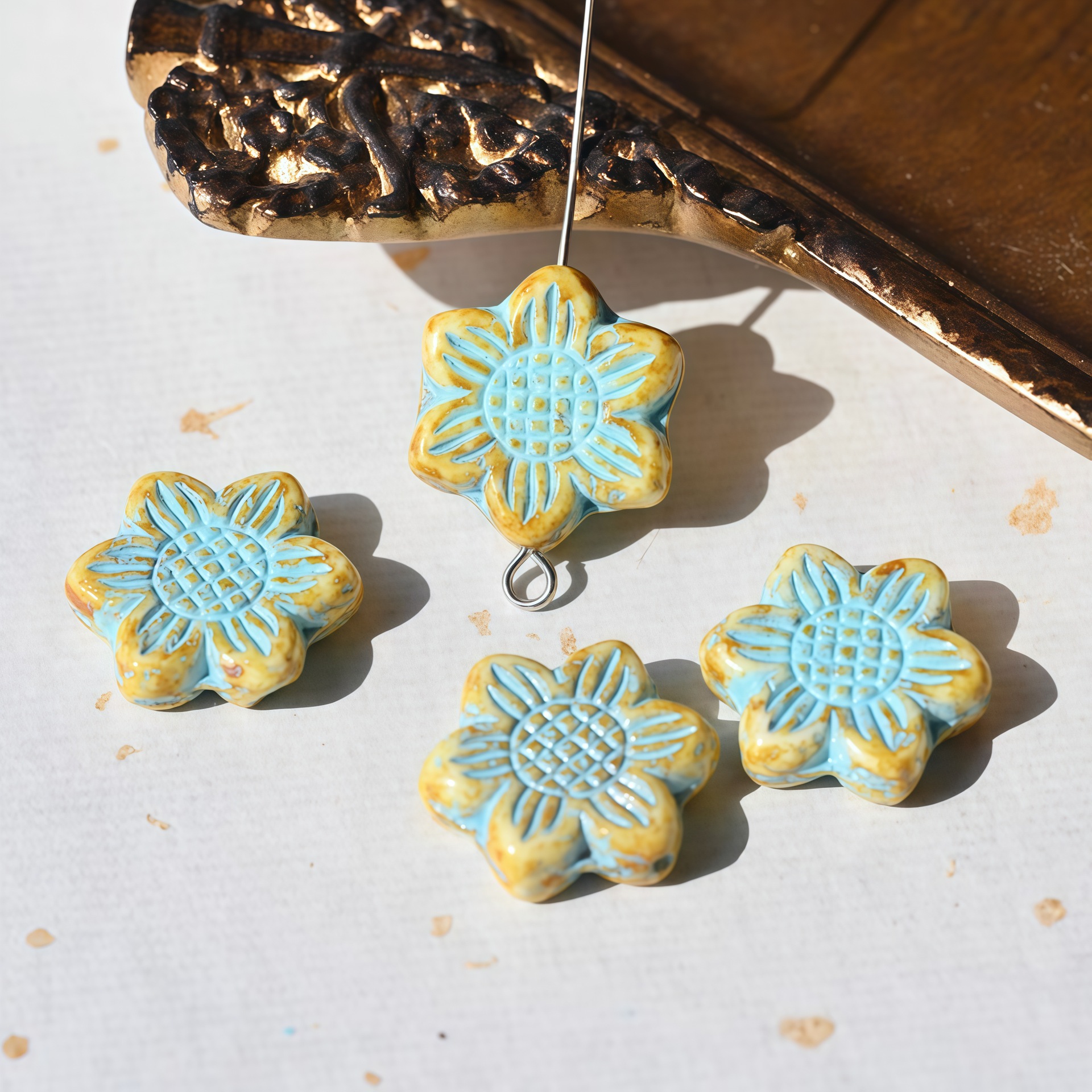 Color: 18mm blue amber smudged blue sunflower 1 piece