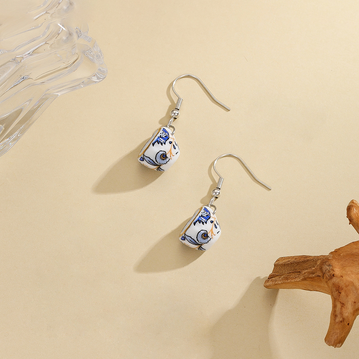 2025 spring and summer new personality cute fashion ceramic oil drop pattern cup and saucer earrings cross-border supply