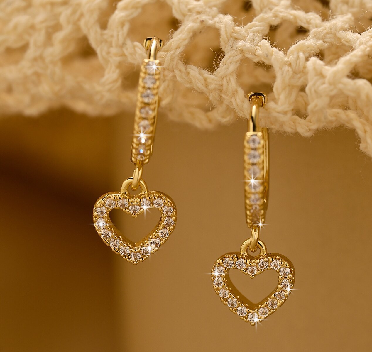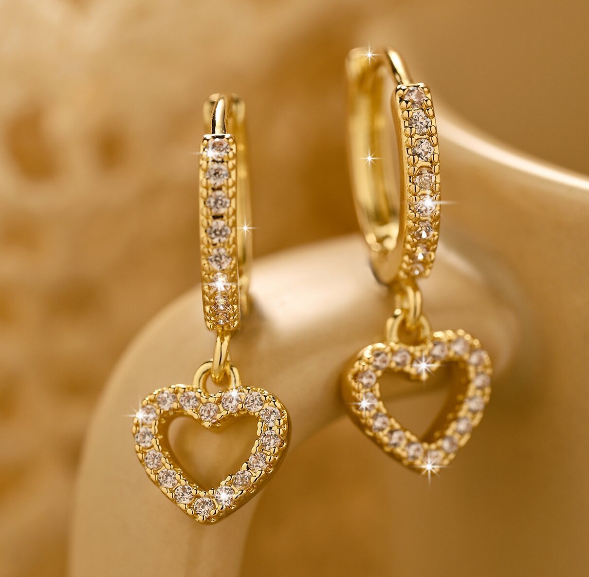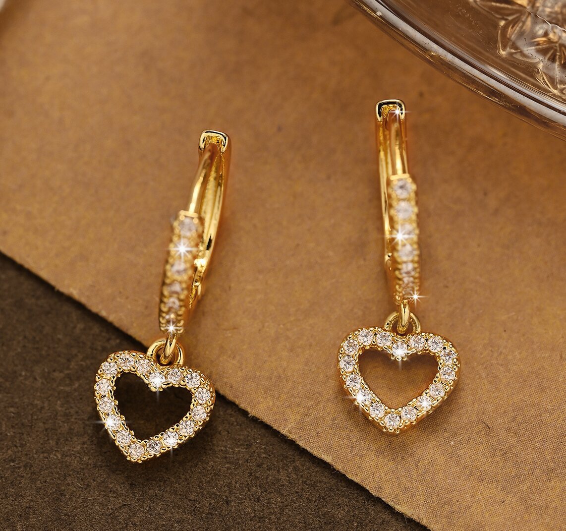 Environmentally Friendly Electroplating, Passable in European and American Markets, New Retro Heart-Shaped Pendant, Ring-Shaped Zircon, 16K Gold Earrings, Simple and Sexy