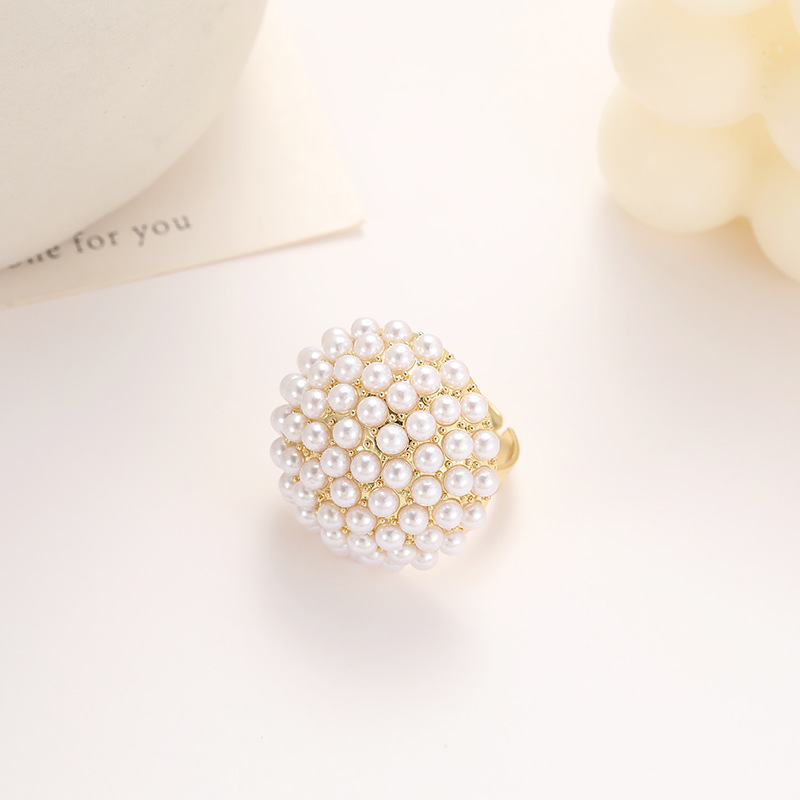 Semi-circular pearl opening ring fashion high-end niche design spherical ring cross-border wholesale manufacturers supply